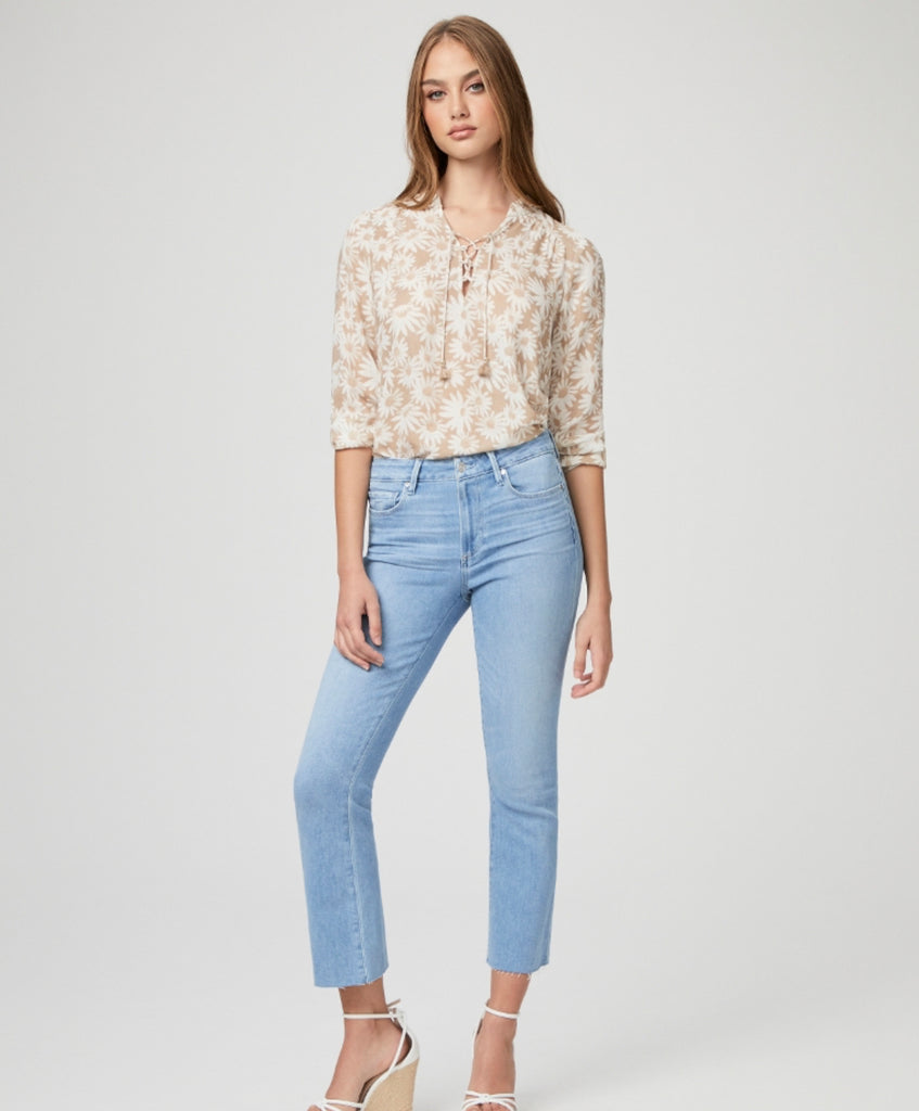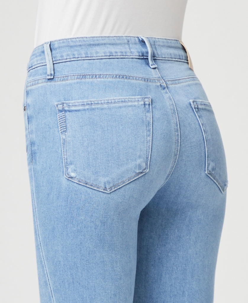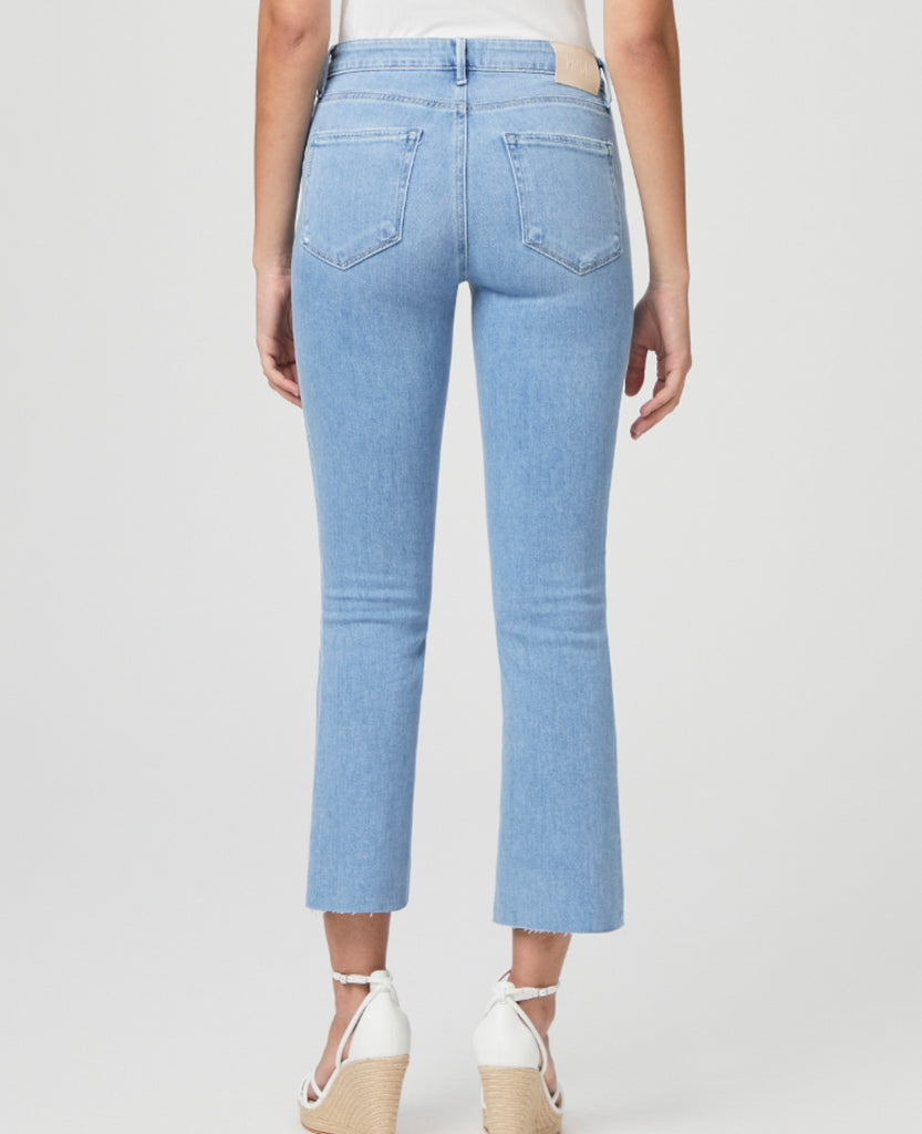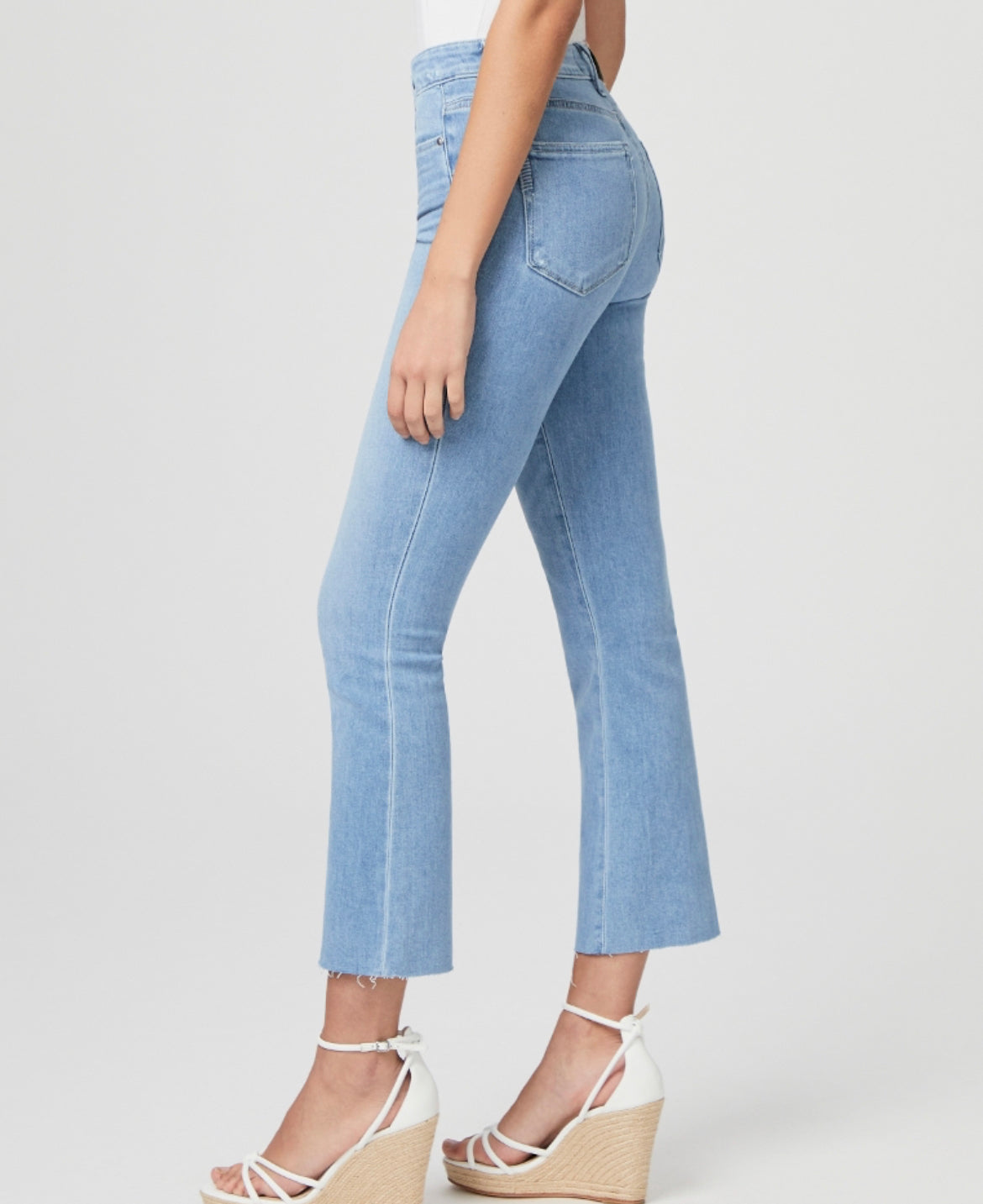 This high-rise cropped flare is slim through the hip and thigh with a kick flare below the knee that finishes above the ankle with a raw hem. Cut from our TRANSCEND VINTAGE denim in a light, powdery blue wash with silver hardware, this style has the look of authentic vintage denim but is incredibly comfortable with plenty of stretch and recovery.