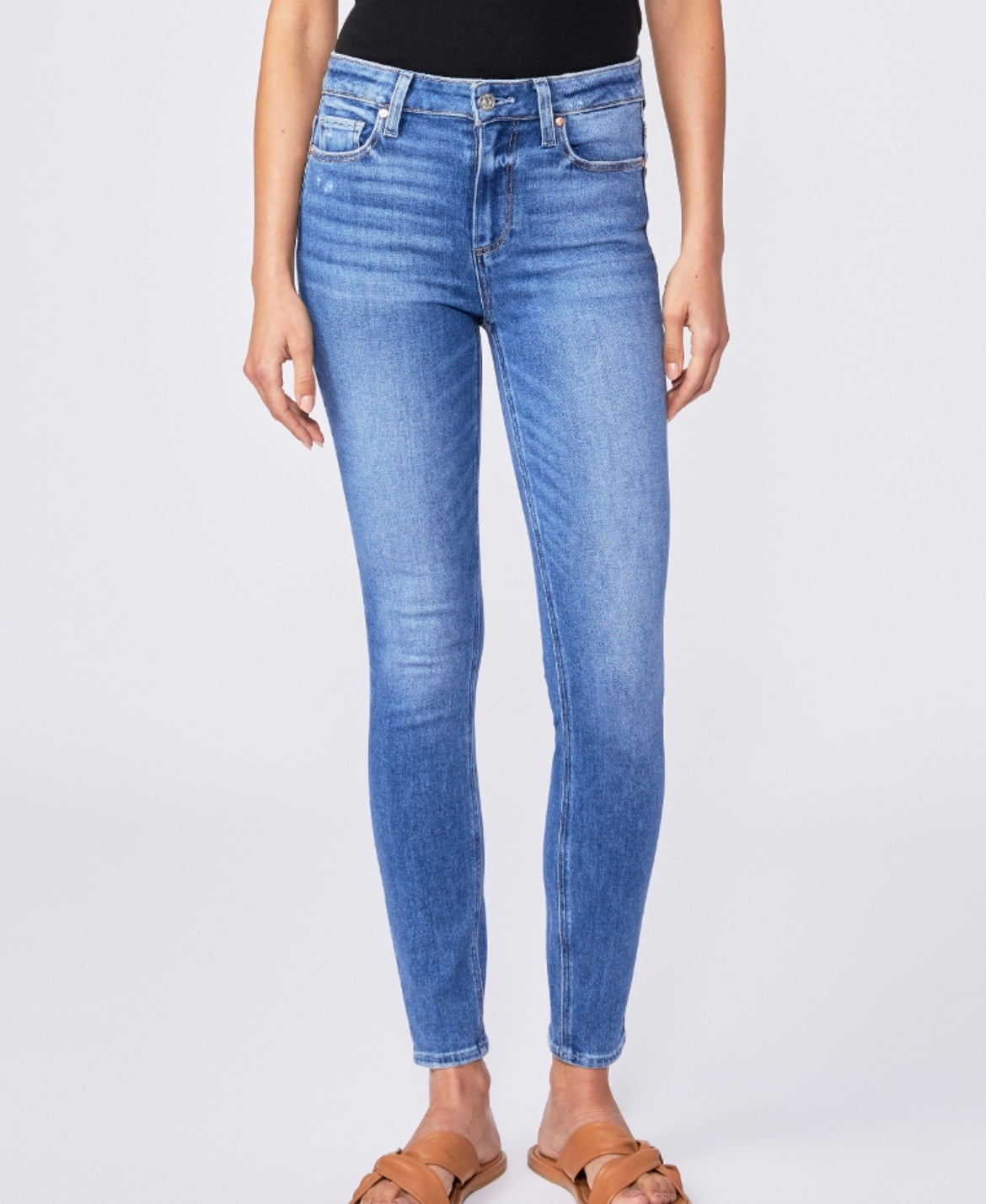 A cropped ankle length in our signature high-rise ultra skinny, the Hoxton Ankle is fitted from the hip through the leg opening. This style comes in a lived-in, medium blue wash with whiskering, fading and mixed metal hardware. Cut from our TRANSCEND VINTAGE denim, this pair has the look of authentic vintage denim but is incredibly comfortable with plenty of stretch and recovery.