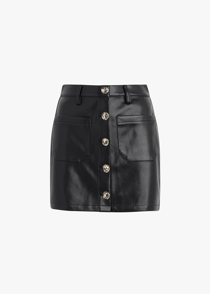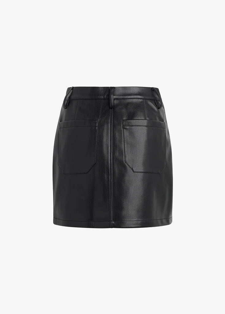 The Mimi Mini is the cool girl vegan leather skirt you don’t have to be a rockstar to wear. High-rise with a 13" length, patch pockets front and back, and button detailing.