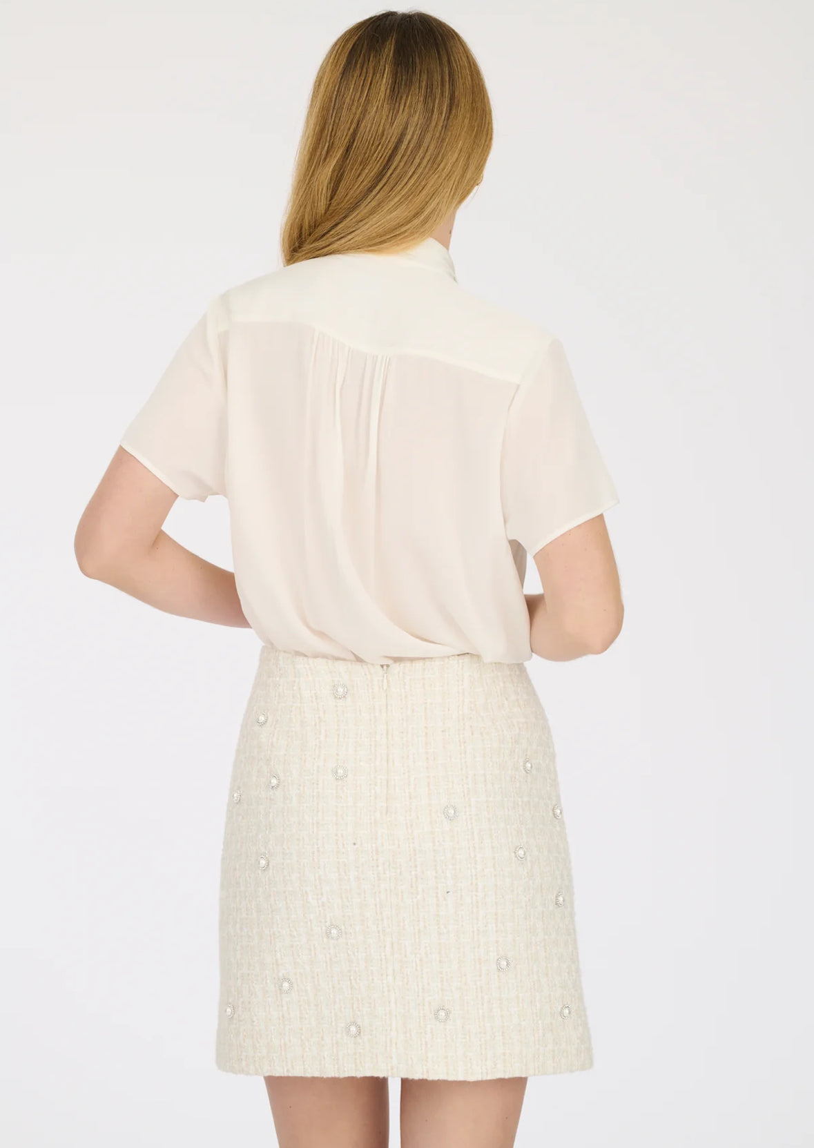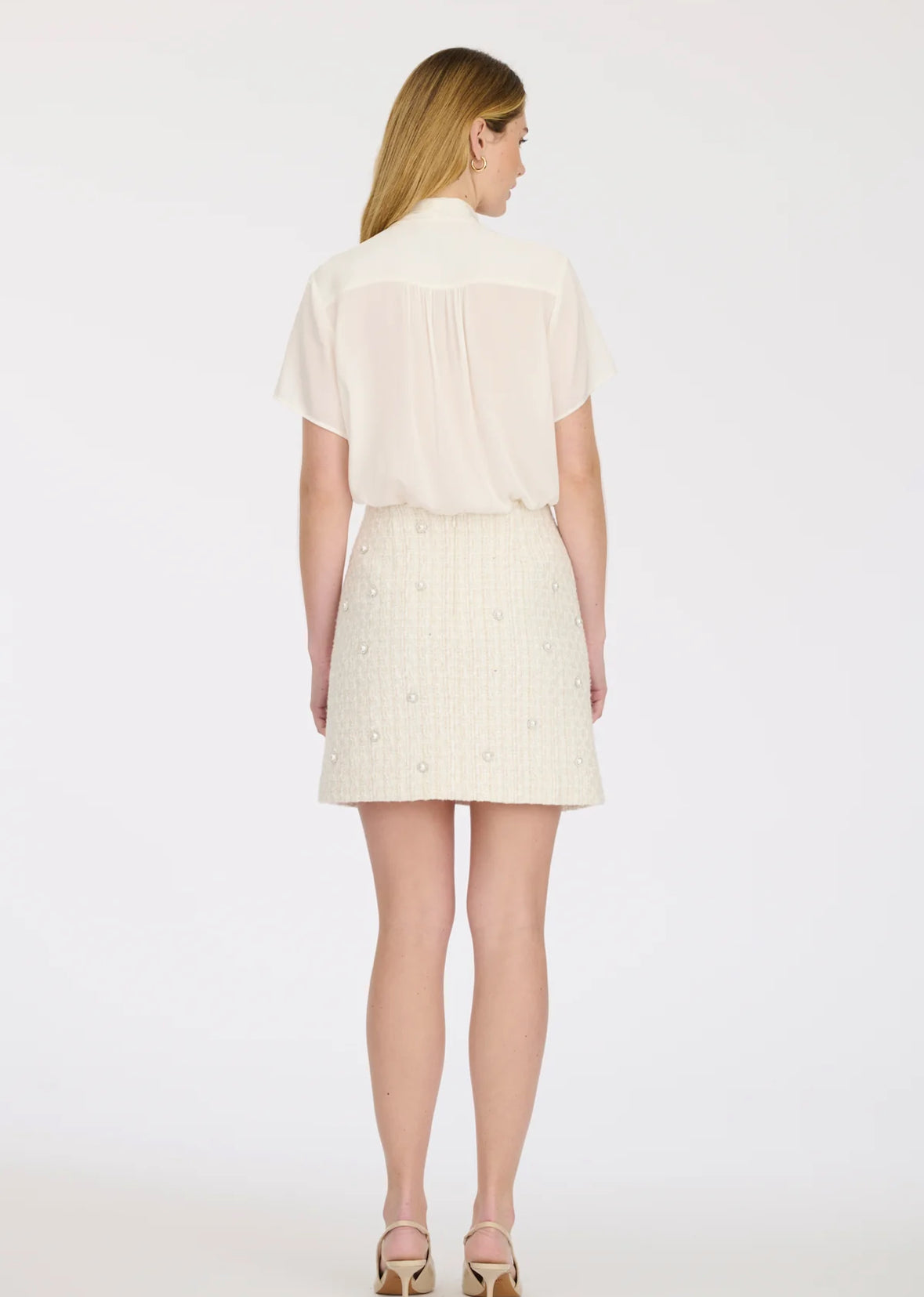 Mieka is 178 cm (5'10") tall and is wearing a size 38.