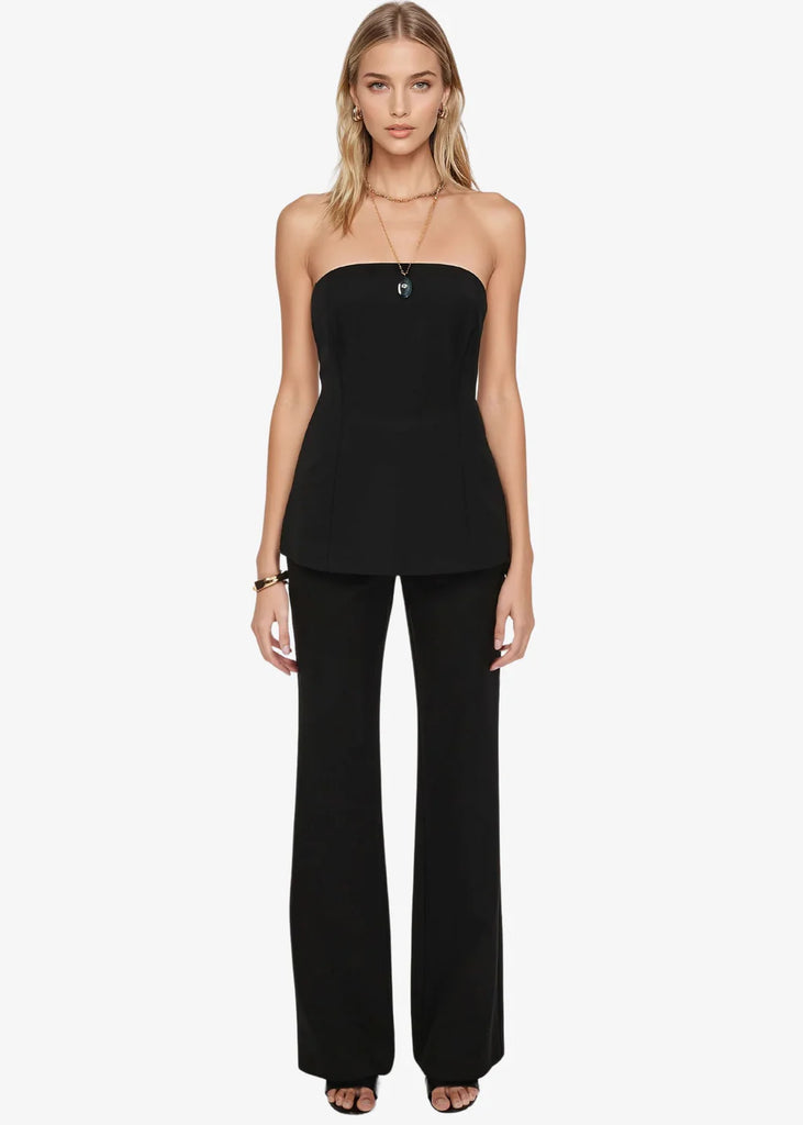 STRAPLESS HEAVY CREPE HIP LENGTH FITTED TOP