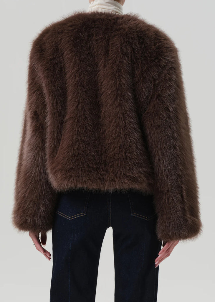 The ‘Esme’ is a plush statement layer crafted from ultra-soft faux fur with a luxurious hand. Designed in a relaxed silhouette, it delivers warmth and texture with an effortlessly elevated feel. The Honey tone—a soft, light-to-medium brown—adds a touch of vintage glamour. Perfect layered over denim or sharp tailoring.