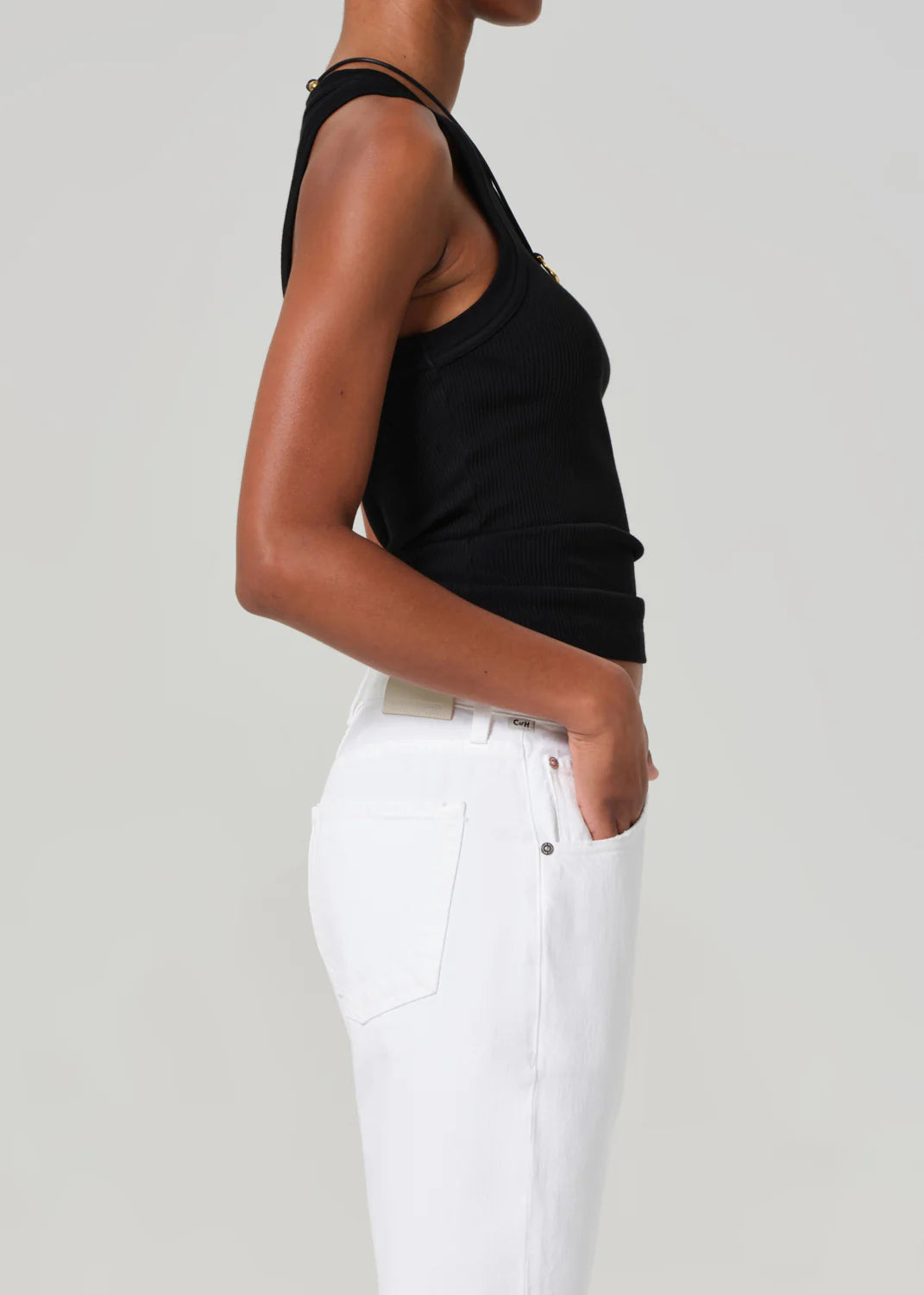 The Isabel Tank is a modern essential, cut in ultra-soft, supportive ribbed cotton with a close, flattering fit. Designed with a high neckline and clean finish, it’s ideal worn solo or layered under structured pieces. A polished base for elevated everyday styling.