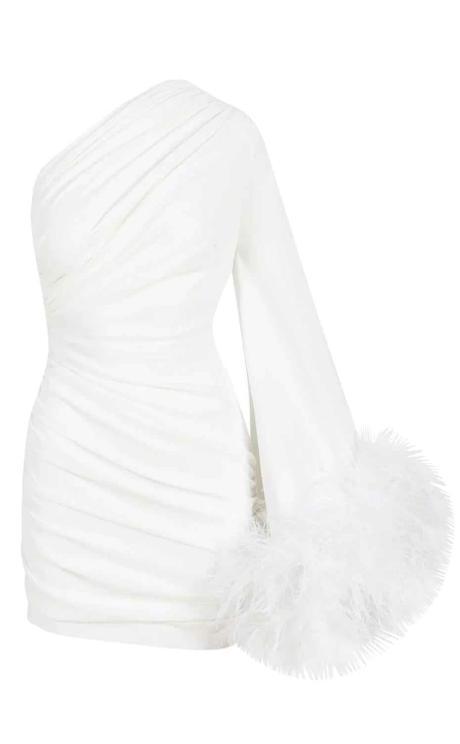 Custom created and delicately tailored by hand, Aden is a statement of her own. Her mini style is highlighted with an exaggerated sleeve. Precise hand draping creates a stunning silhouette.