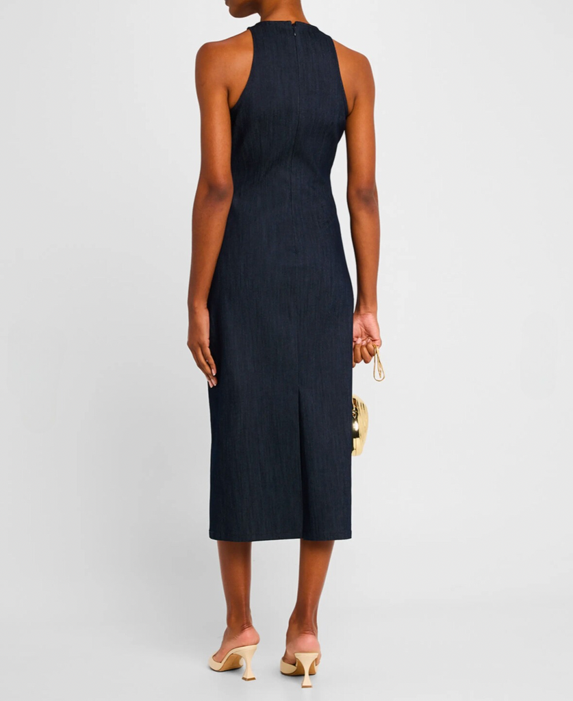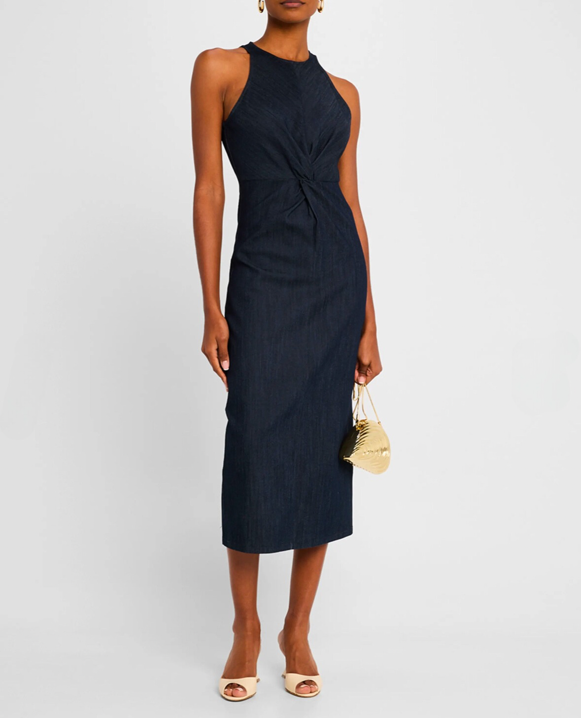 - Cinq a Sept "Clara" denim midi dress featuring a twist-front