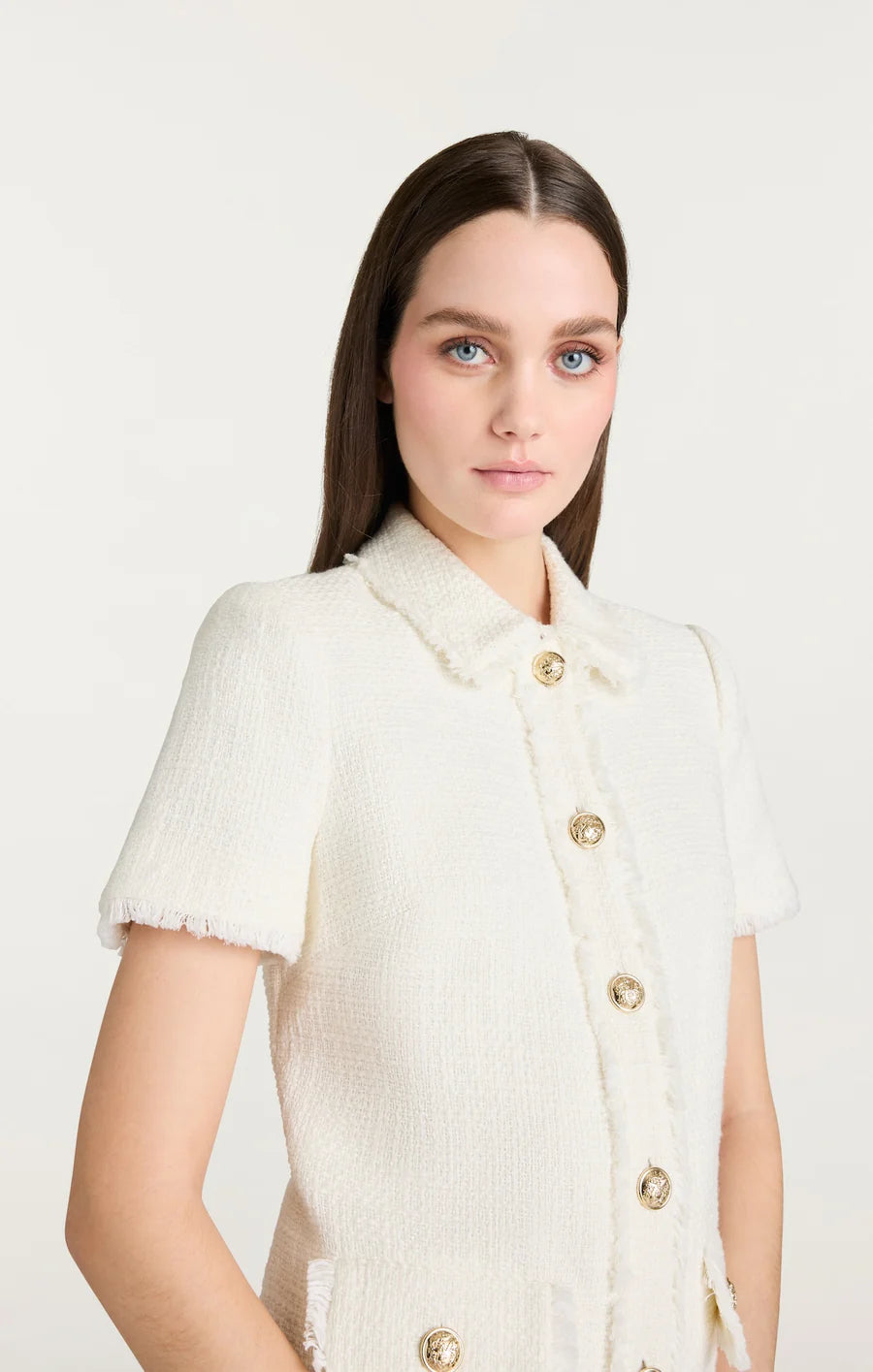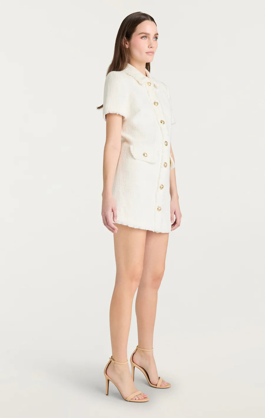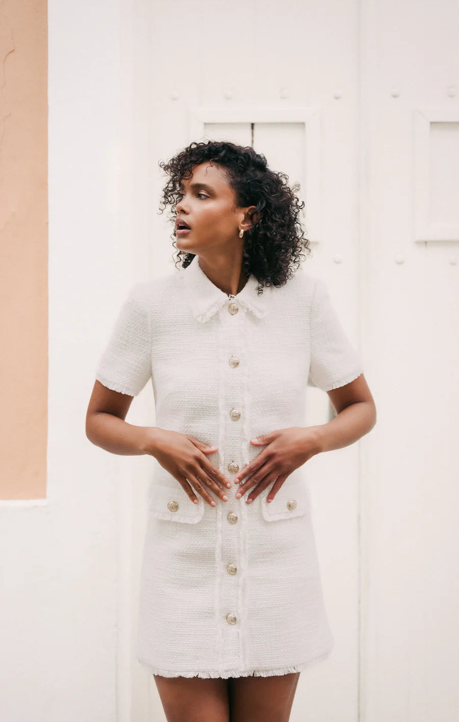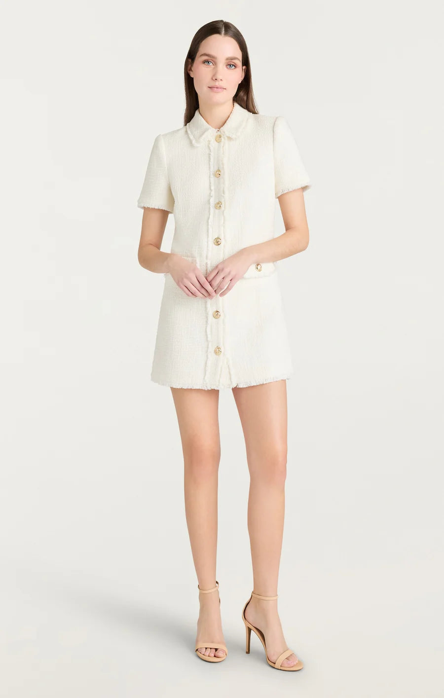 Effortlessly chic, the Pammy Dress is the perfect addition to your wardrobe. The collared neckline, short sleeves, and mini length create a flattering silhouette. Embossed buttons provide the perfect finishing touch.