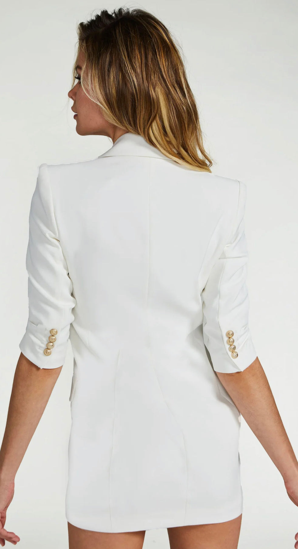 Go for a professionally polished looked with the Reina. Tailored to perfection with dramatic shoulders and a single breasted design, this blazer-inspired frock will have you best dressed at your next networking event or cocktail hour.