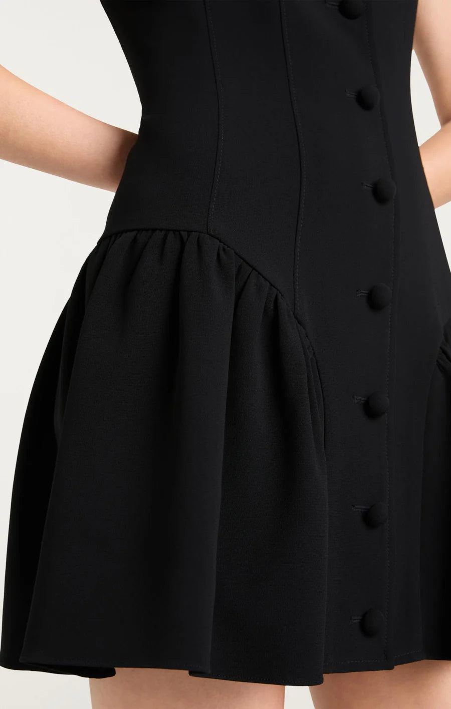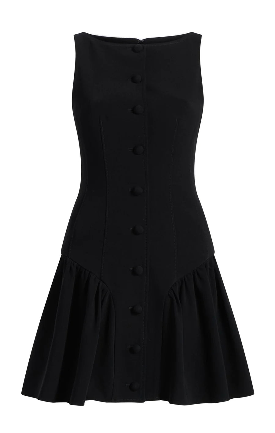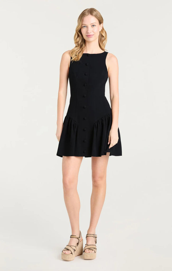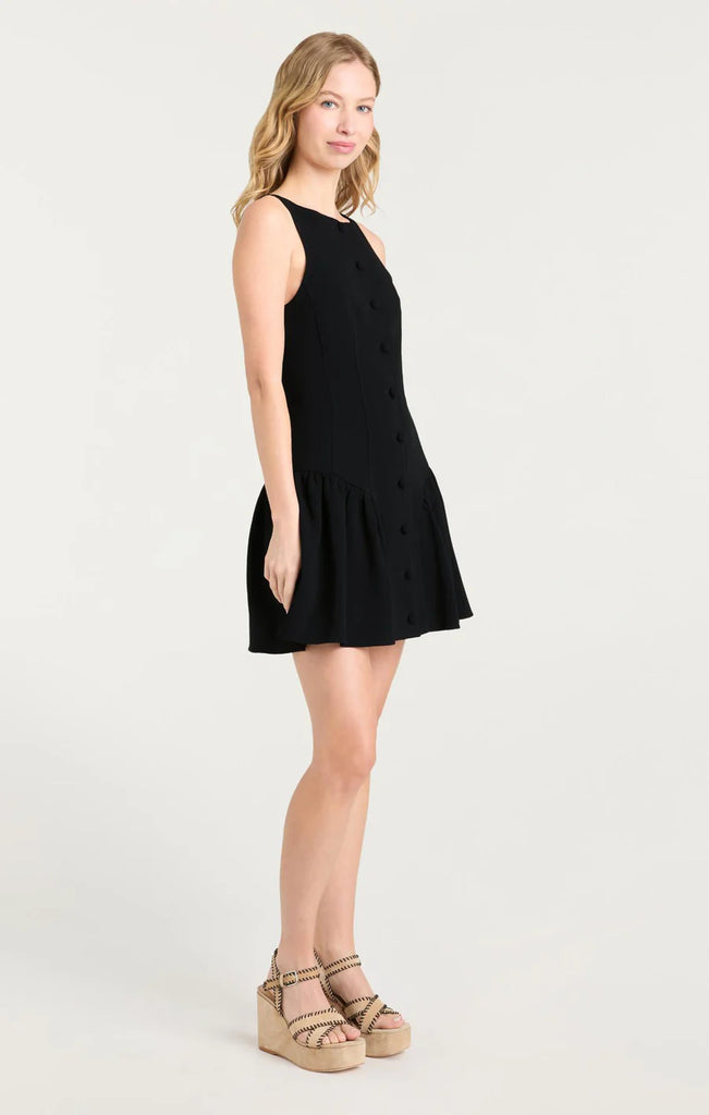 The Royce Dress effortlessly blends playful charm with elegant style in this sleeveless mini dress. Its button up detailing and pleated bottom create a feminine silhouette that is both flattering and flirty, perfect for any occasion.