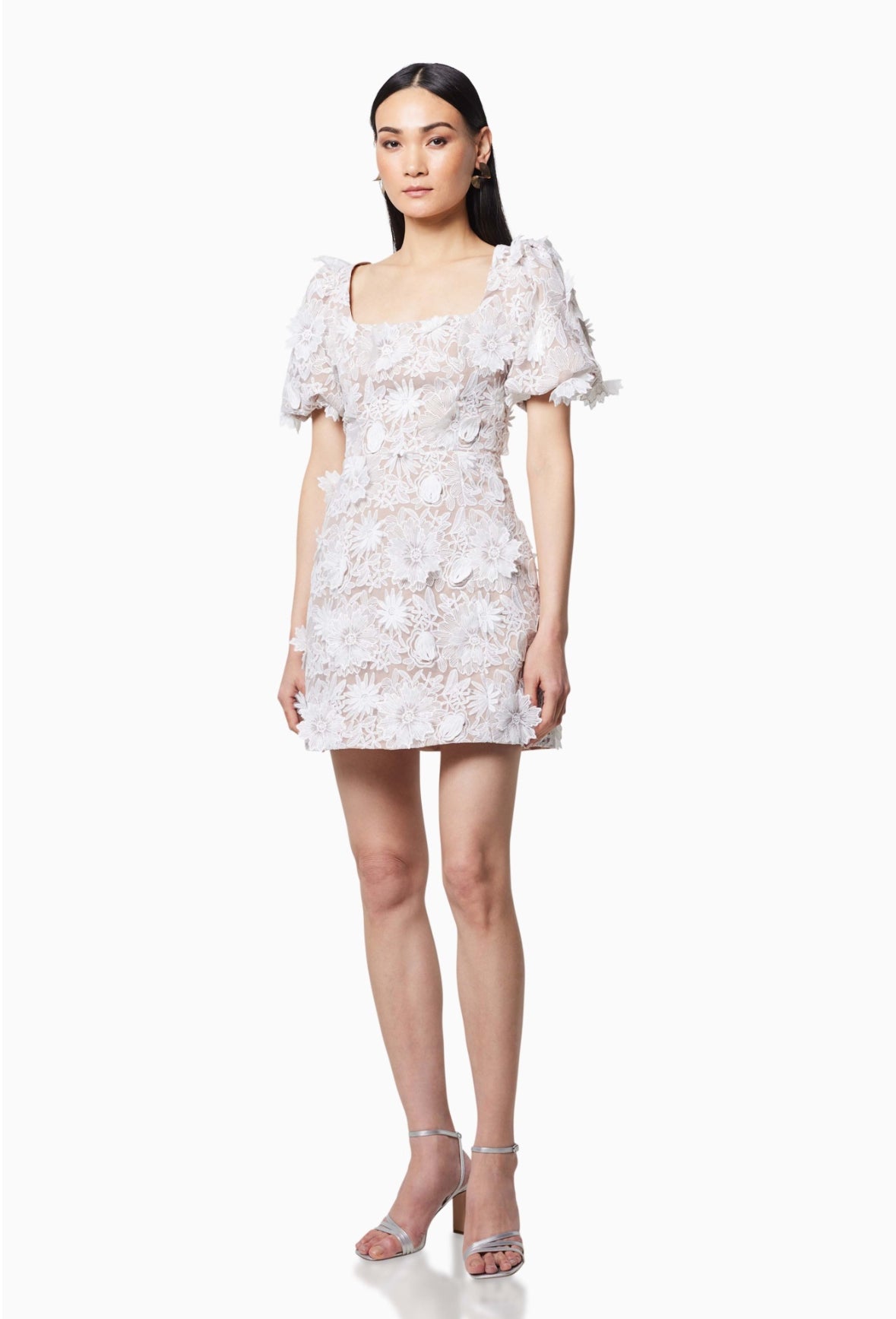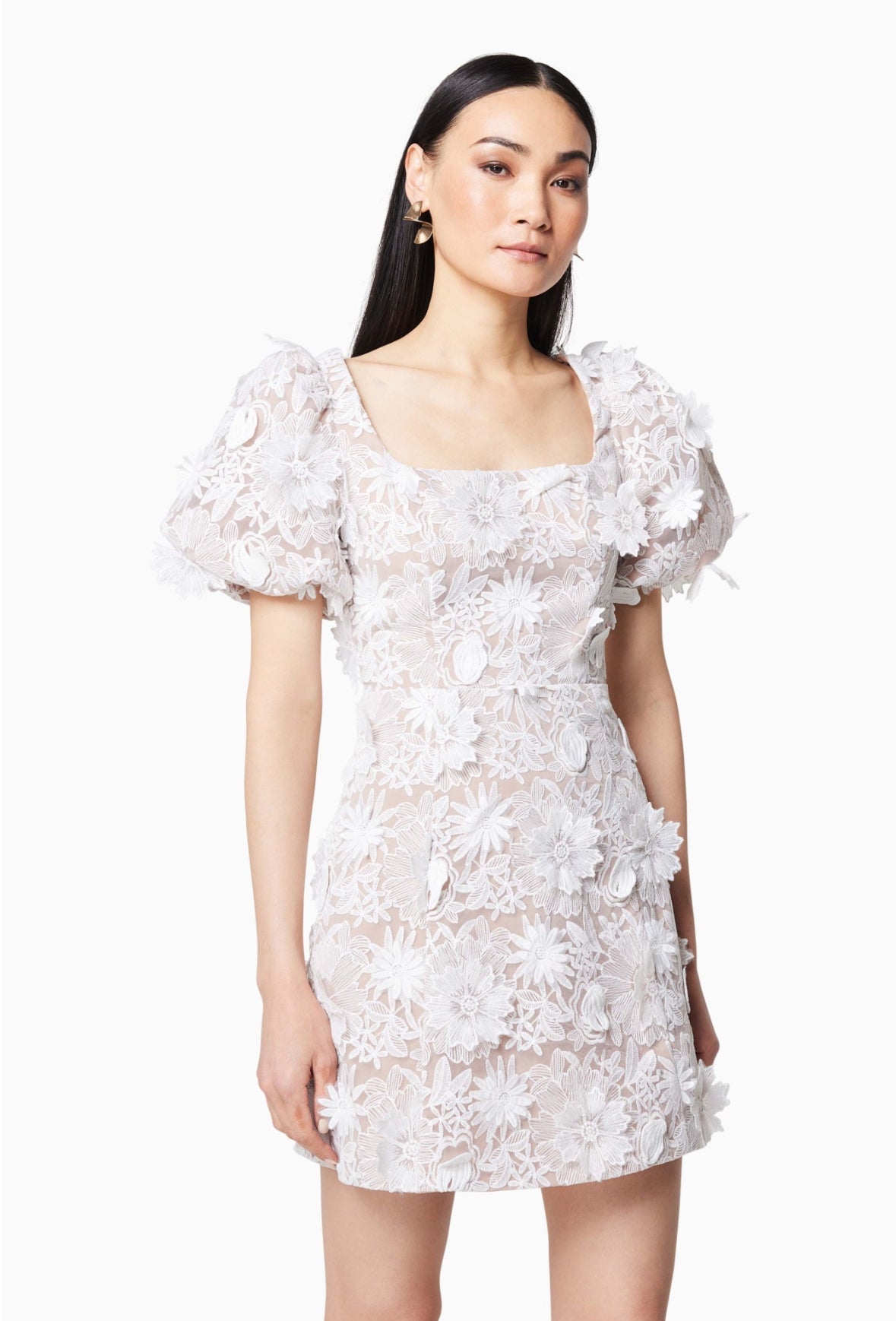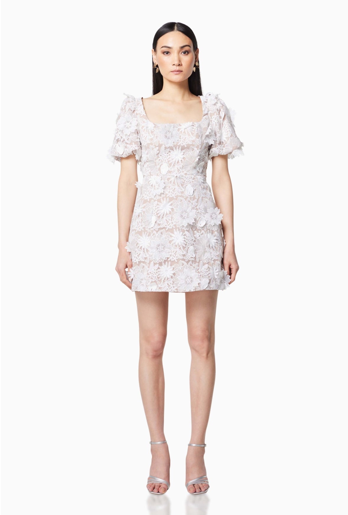 The Balearic Dress is a stunning mini dress by Elliatt. With Elliatt's signature shape, this dress features 3D floral lace, a square neckline and puff sleeves.