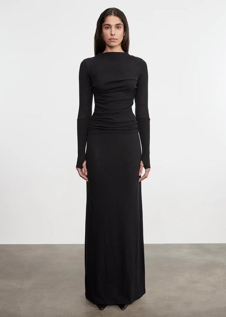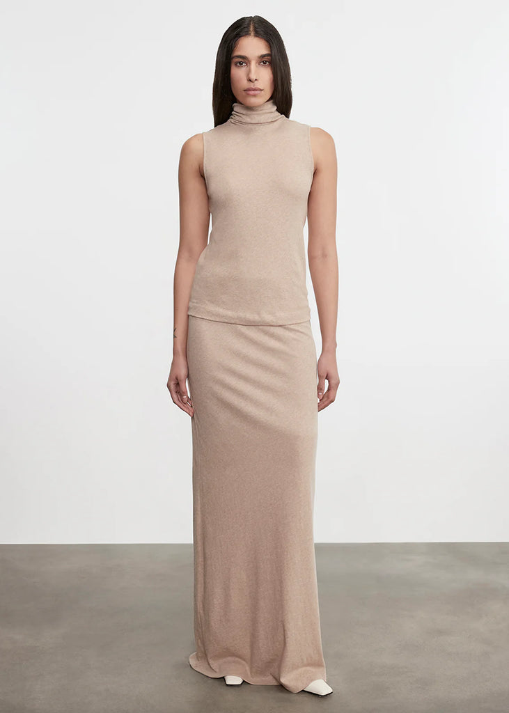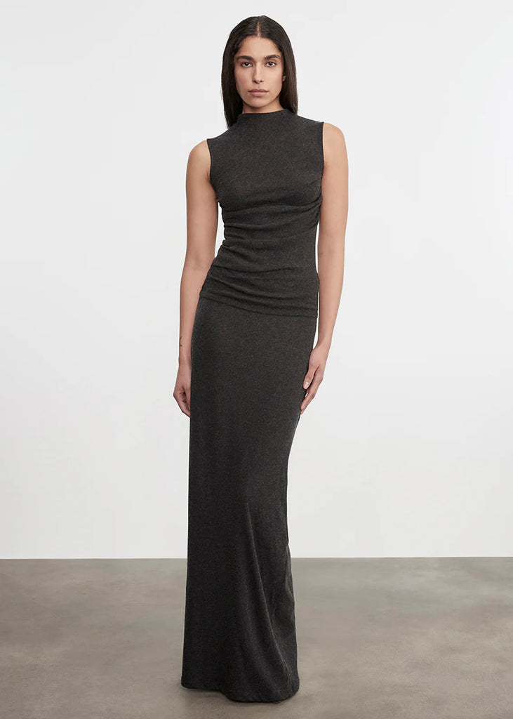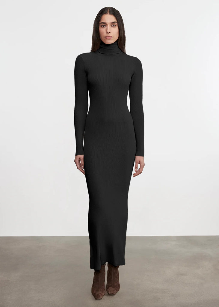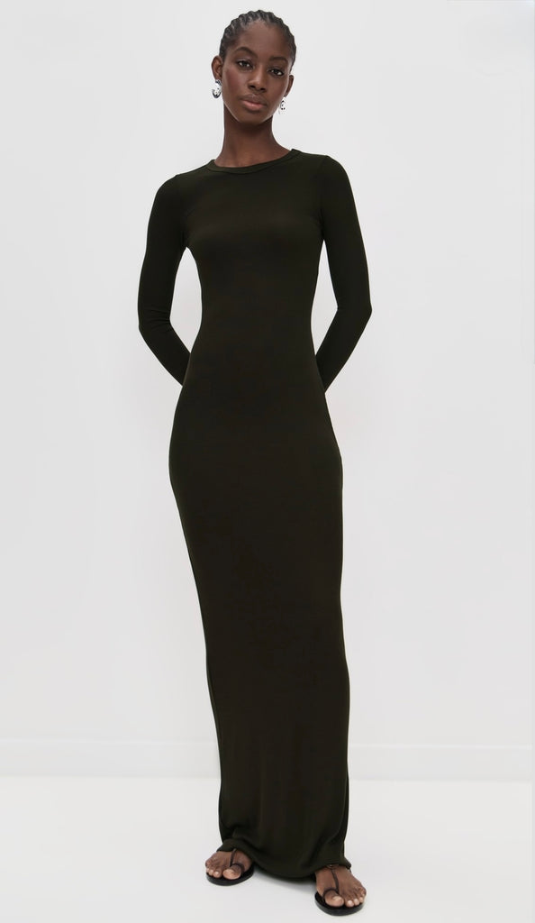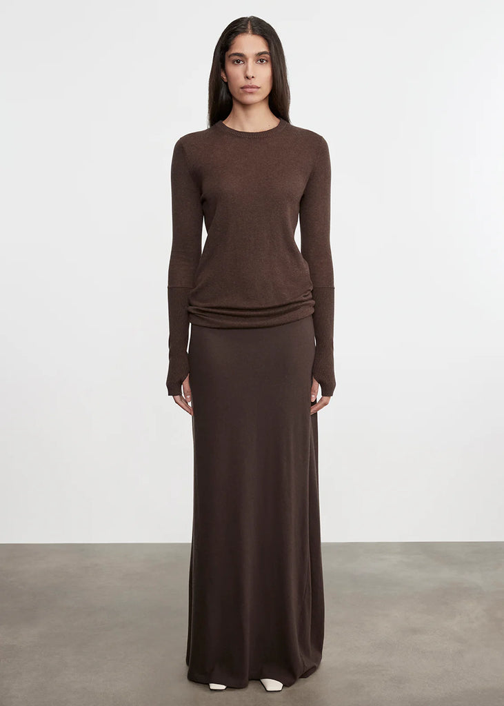Silk Rib Crewneck Fluid Dress in Coffebean