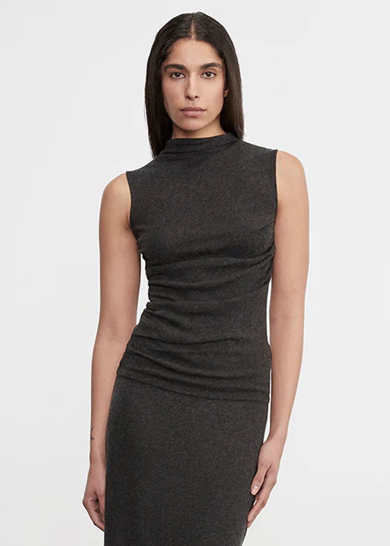 Cashmere Sleeveless Twist Top in Charcoal
