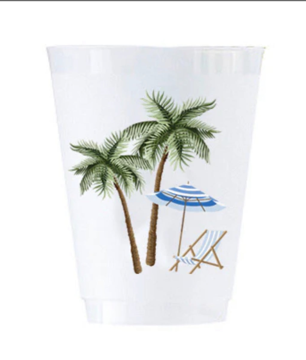 A darling addition to your home for Spring and Summer entertaining, or a charming hostess gift...our shatterproof cups with our palm trees and umbrella chair on the front of the cup.