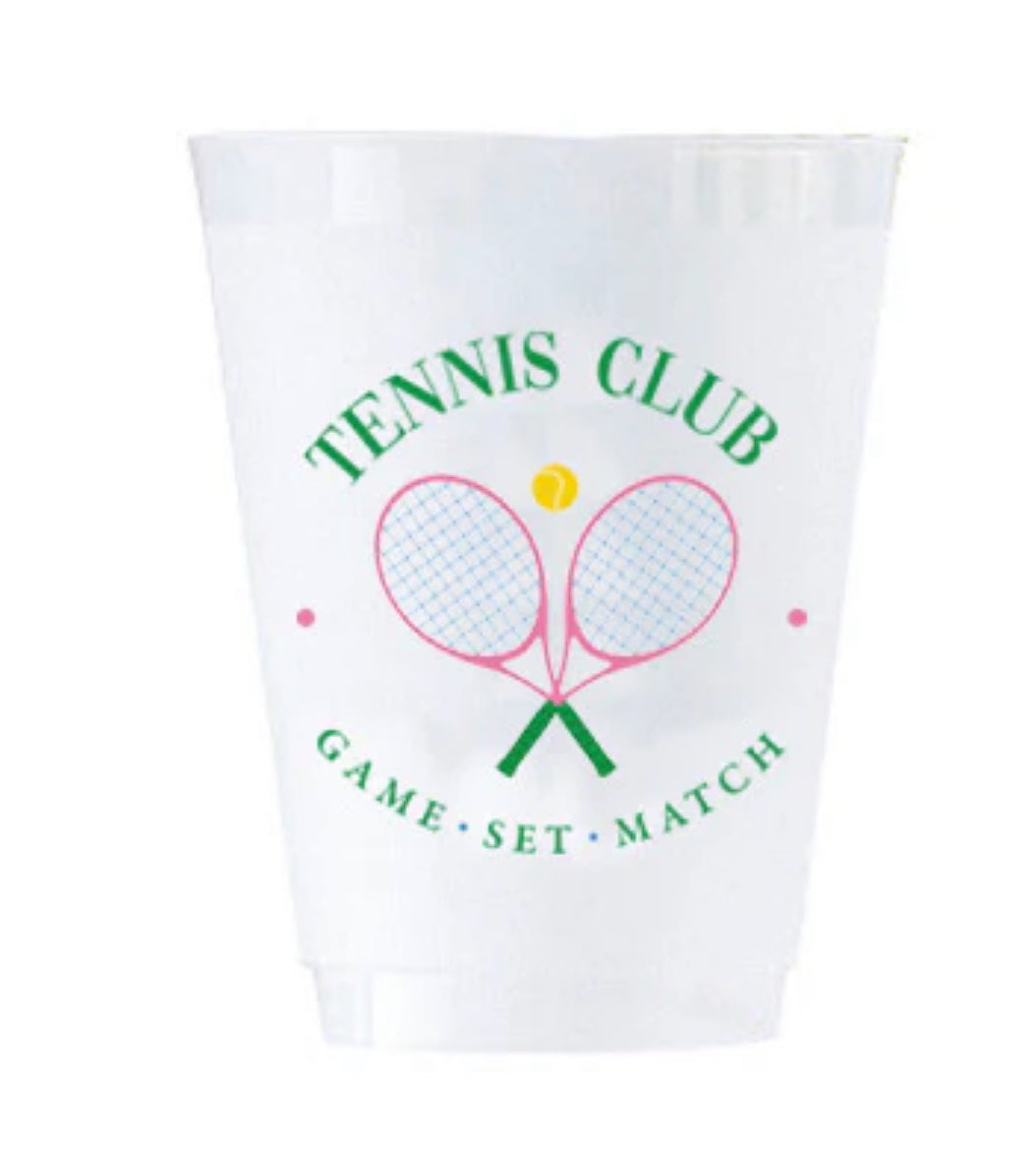 A darling addition to your home for Spring and Summer entertaining, or a charming hostess gift...our shatterproof cups with our preppy tennis club motif on the front of the cup.