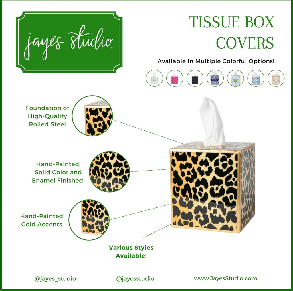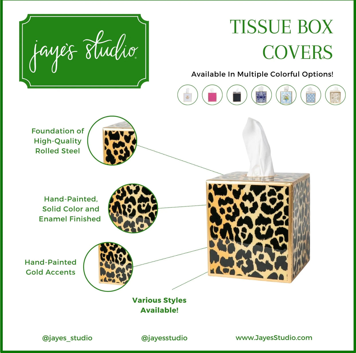 Our Tissue Box Covers are an exquisite addition to any home. Our boutique cover effortlessly adds a touch of pattern and color to any space or room. Our Tissue Box Cover is designed to fit standard-sized tissue boxes, ensuring that you can easily conceal tissues or towels while keeping them within reach.