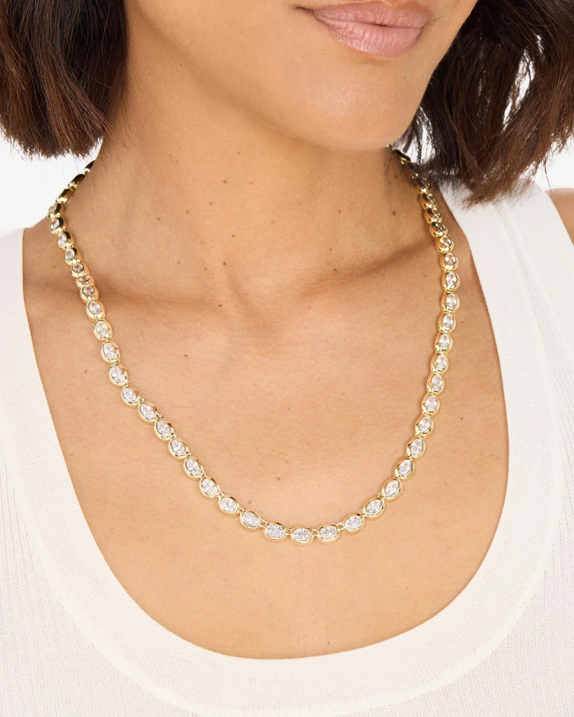 Jewelry that means business. The She's a Boss Tennis Necklace doesn't whisper luxury. It speaks it fluently. Bezel-set simulated diamonds bring the kind of energy that turns heads and takes charge.