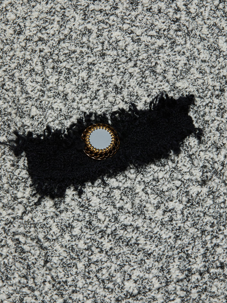 The cool, cropped Arielle knit jacket features contrast trim, gold-rimmed buttons, and patch pockets with raw-edge detailing. The structured shape and bold accents give it a sharp, polished look with a hint of attitude. Dress it up with a high-waisted pencil skirt, or dress it down with your favorite jeans and sandals.