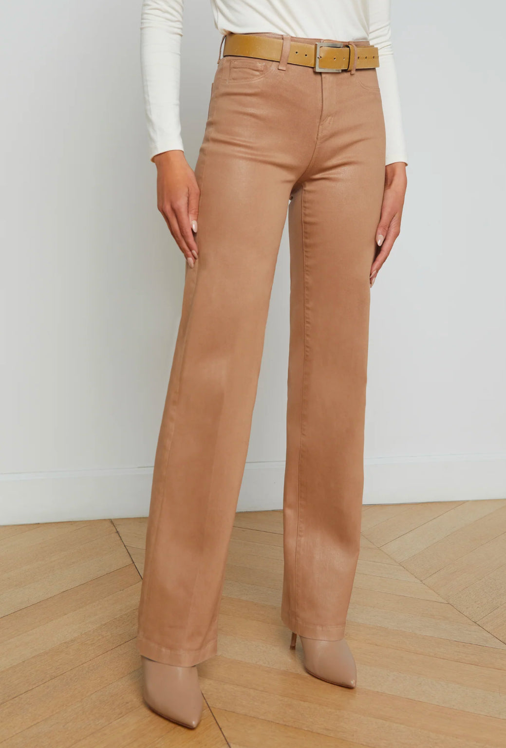 Clayton Coated Wide-Leg Jean in Cappuccino Coated