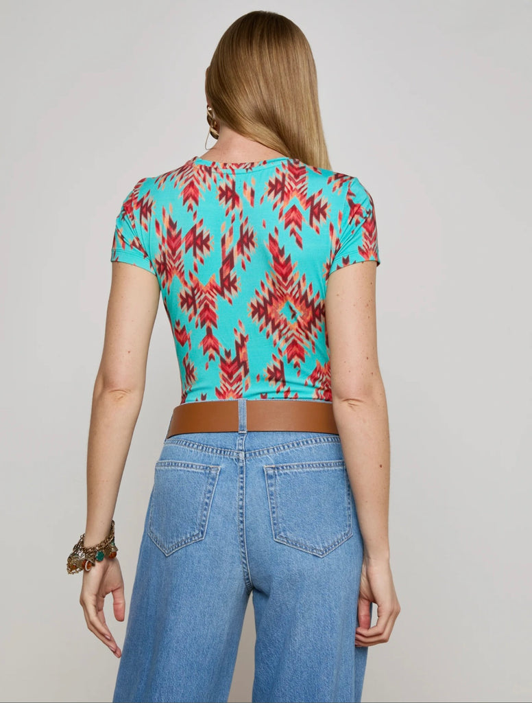 Ressi Fitted Tee in Pool Blue Multi Ganado Print