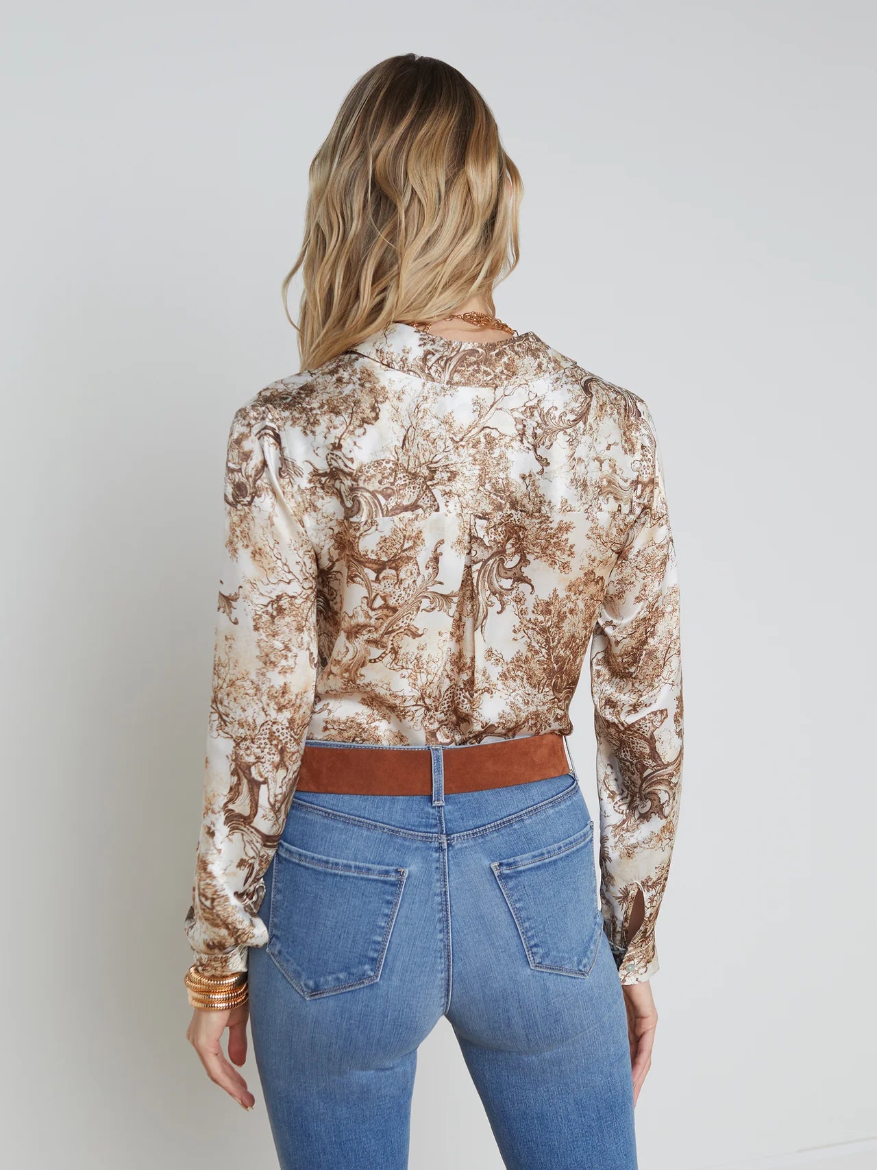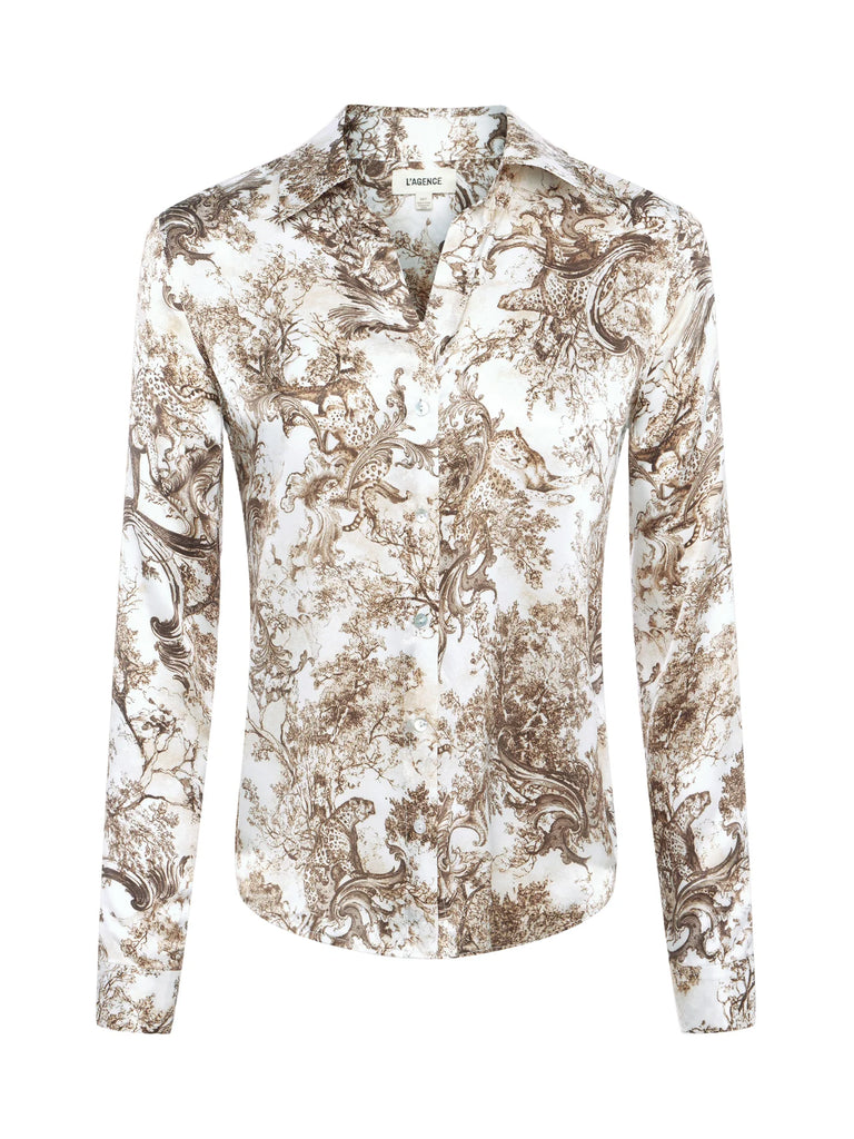 The perfect long sleeve silk blouse is called the Tyler. A sharp collar and pleated back yoke make this button-down an instant classic. Offered in a range of fresh colorways and prints, there's a Tyler for every occasion. Pair with denim for a polished casual look. Make it meeting-ready with a tailored jacket and wide-leg trouser.