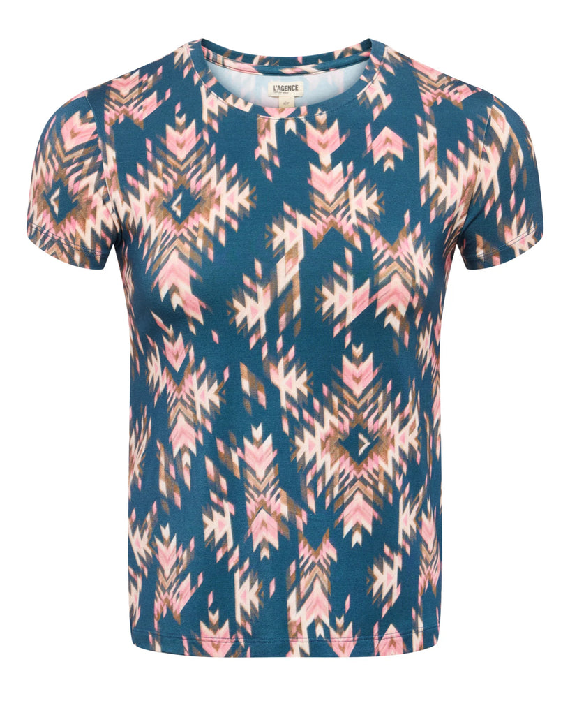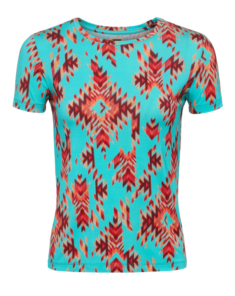 Ressi Fitted Tee in Pool Blue Multi Ganado Print