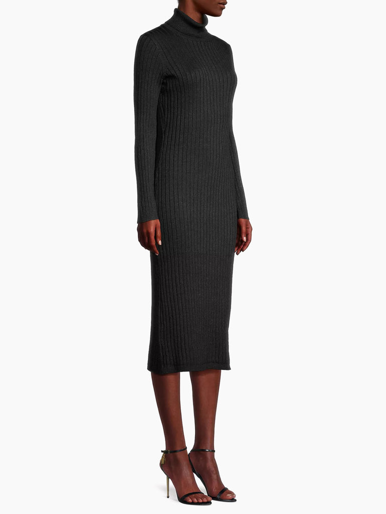 Majestic Filatures’ rib-knit cotton-blend sweaterdress is styled with a turtleneck and long sleeves.