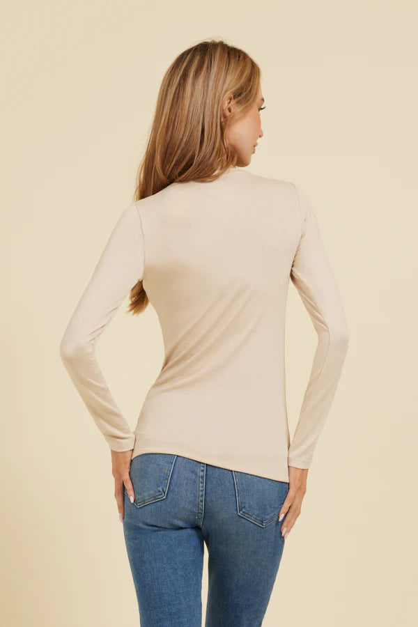 Soft Touch Long Sleeve Crewneck T-Shirt in Cream