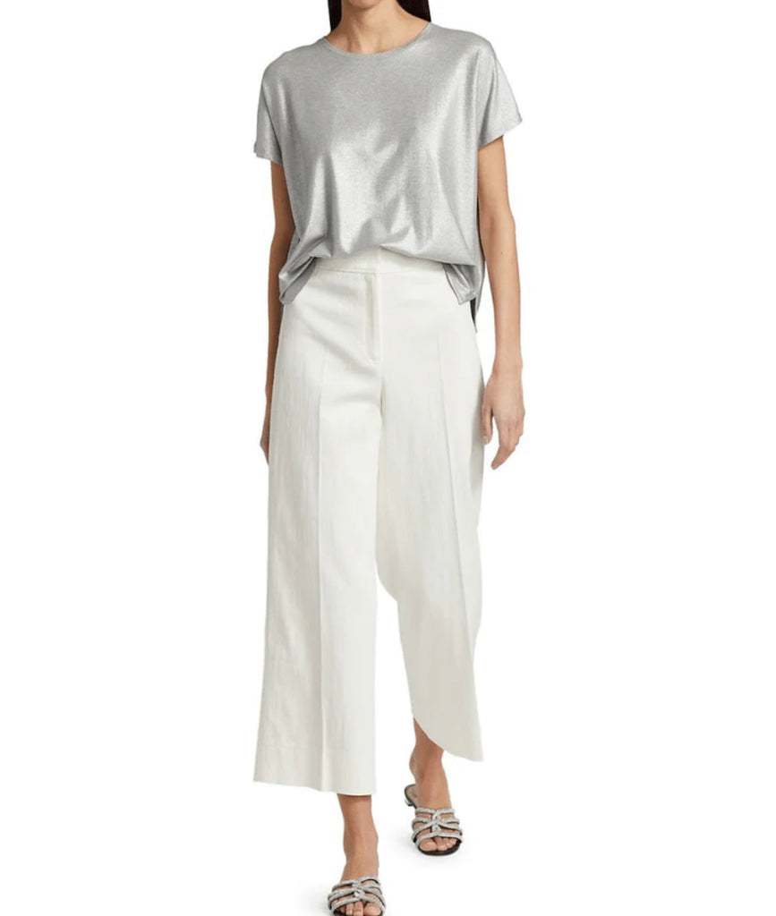 Soft Touch Metallic Short Sleeve Crewneck in Metal Grey