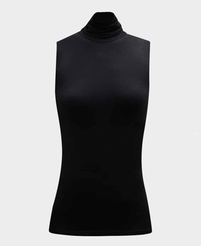 Soft Touch Sleeveless Turtleneck in Noir
