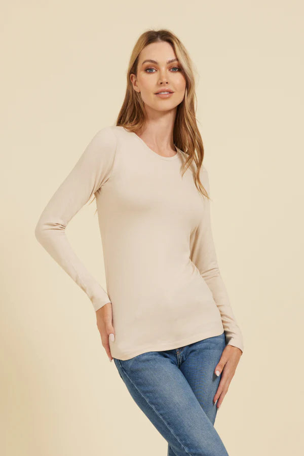 Soft Touch Long Sleeve Crewneck T-Shirt in Cream