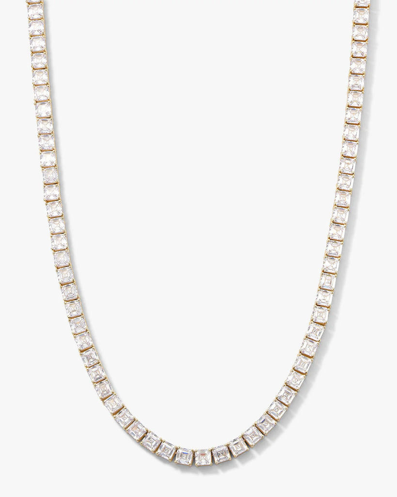 The Queen's Tennis Necklace 18" Gold|White Diamondettes