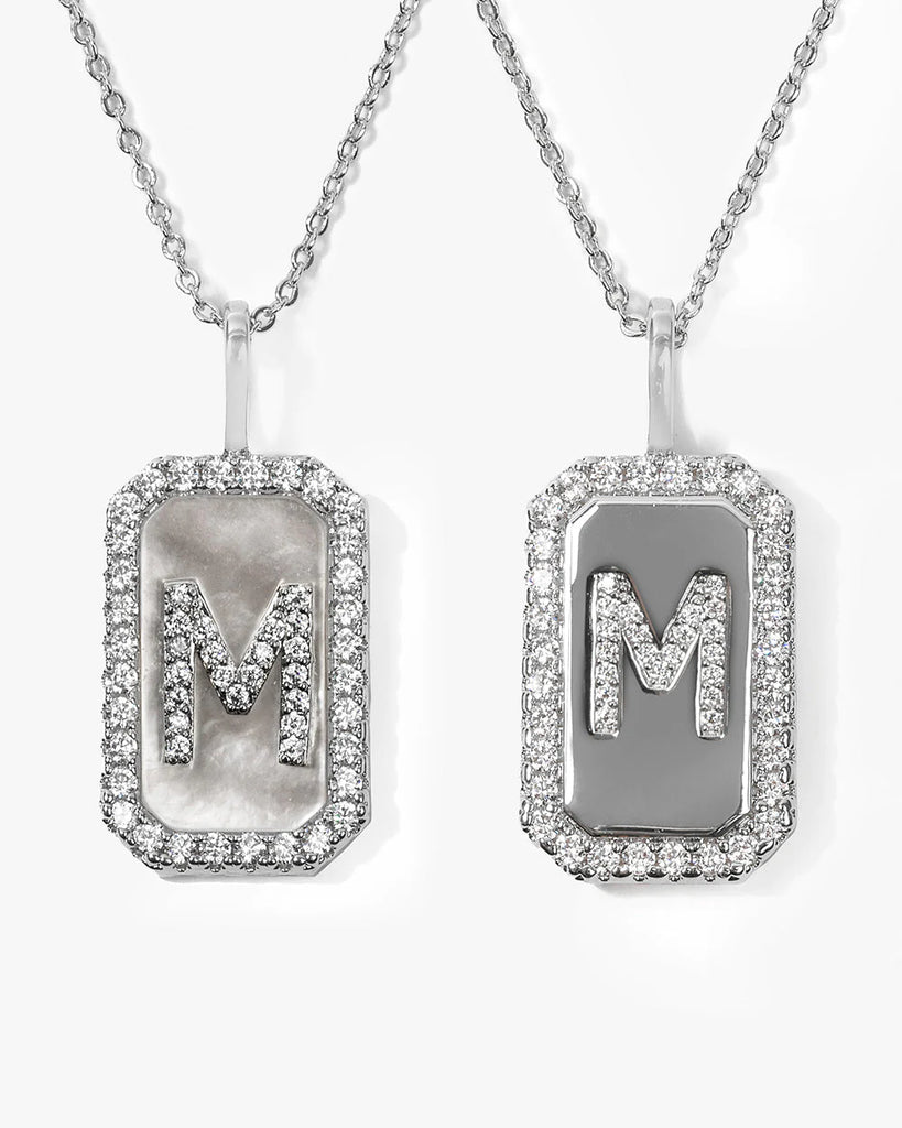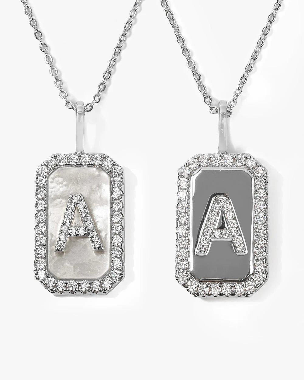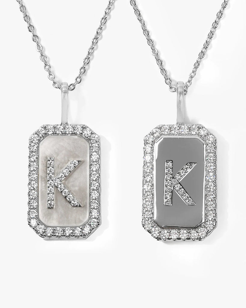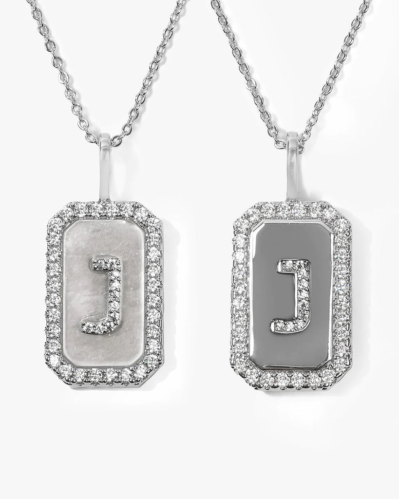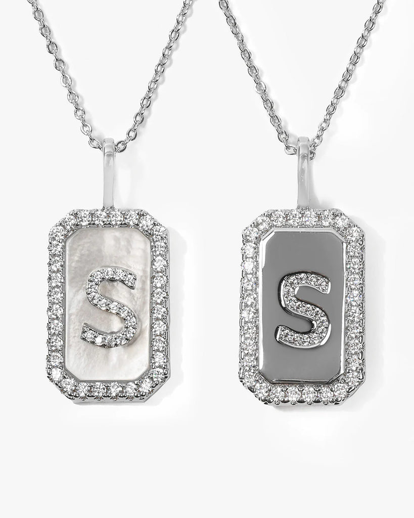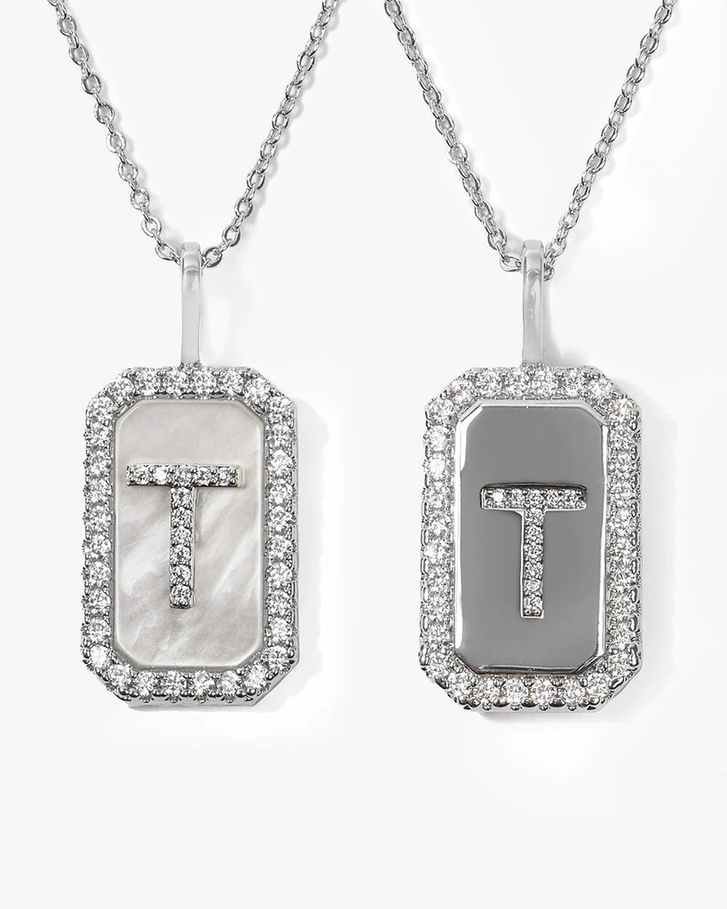 Wear it your way. Our NEW Love Letters Double-Sided Necklace combines some of our favorite features: dog tag + mother of pearl + pavé diamond initials = We're OBSESSED. And it's double sided?!?!  That is Next Level.