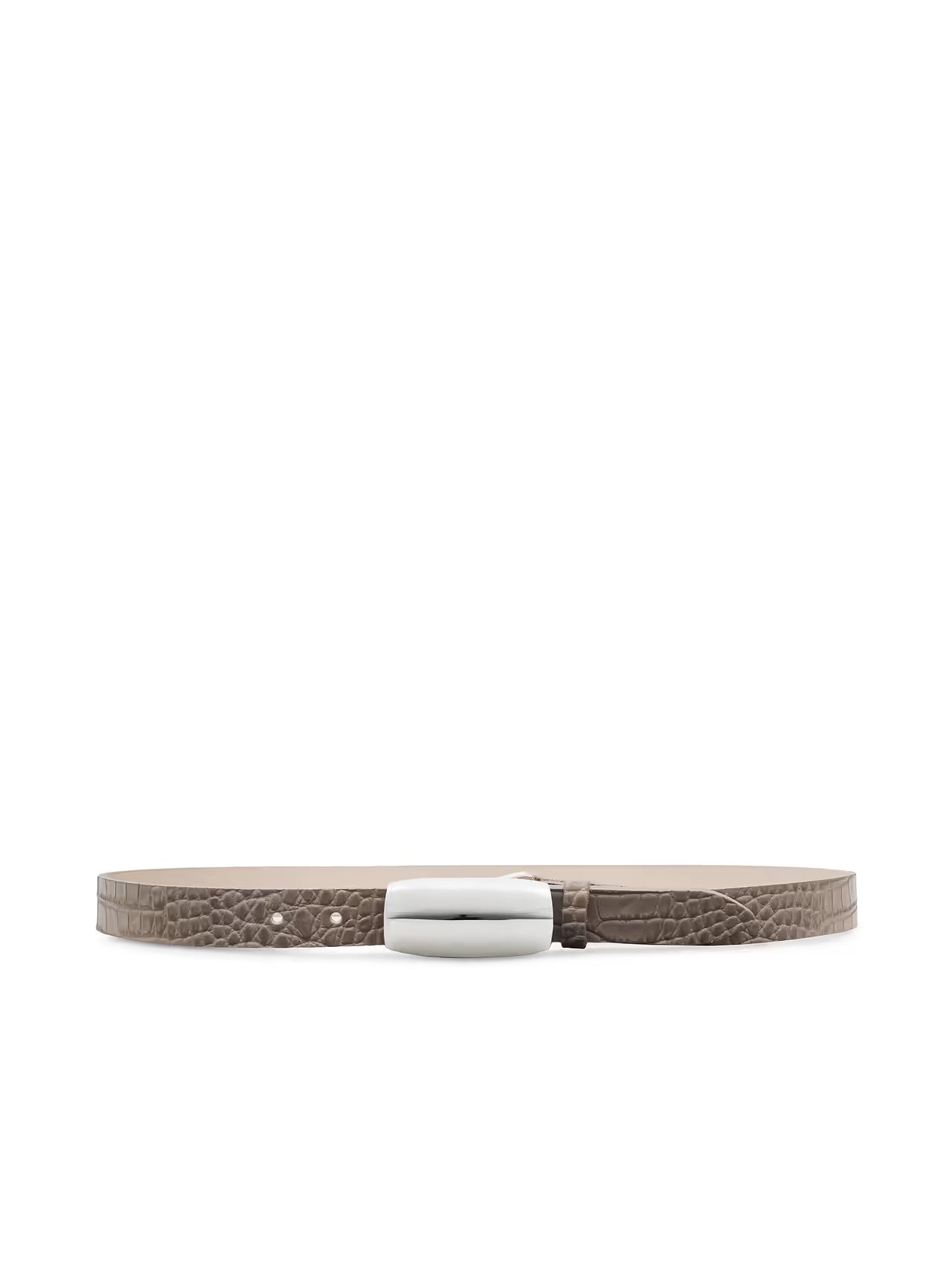 The Marlowe belt exudes effortless sophistication with its cappuccino croc-embossed leather and domed buckle. Contemporary and cool, it brings a crisp, high-shine finish to any look. Style with minimalist tailoring or tonal layers for editorial edge.