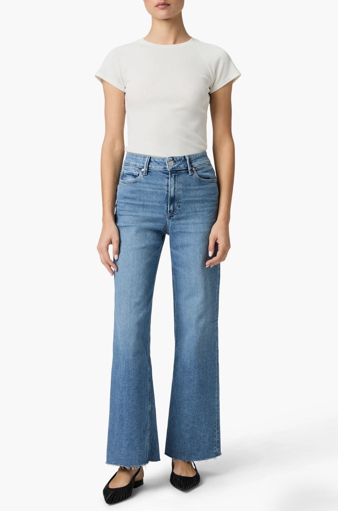 Soft and stretchy jeans are turned to the perfect fade and finished with unfinished hems for a shot of edge.