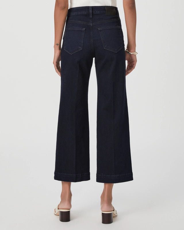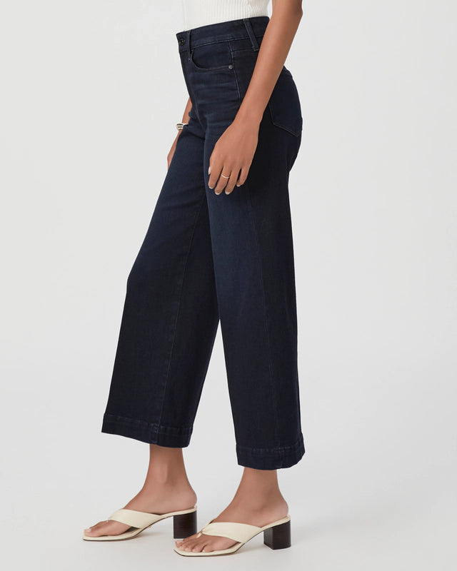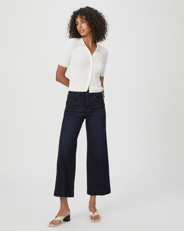 This modern ultra high-waisted wide leg has an easy, relaxed fit and an ankle length silhouette. Cut from our TRANSCEND VINTAGE denim in a chic, elevated dark wash, this style has the look of authentic vintage denim but is incredibly comfortable with plenty of stretch and recovery.