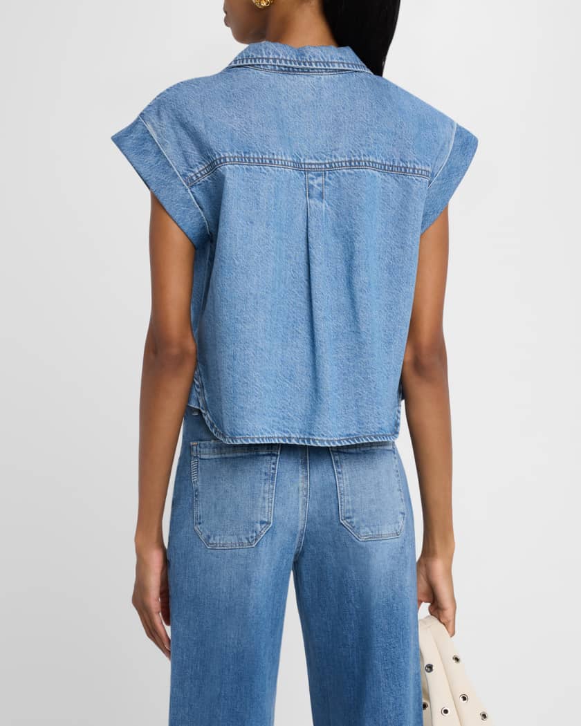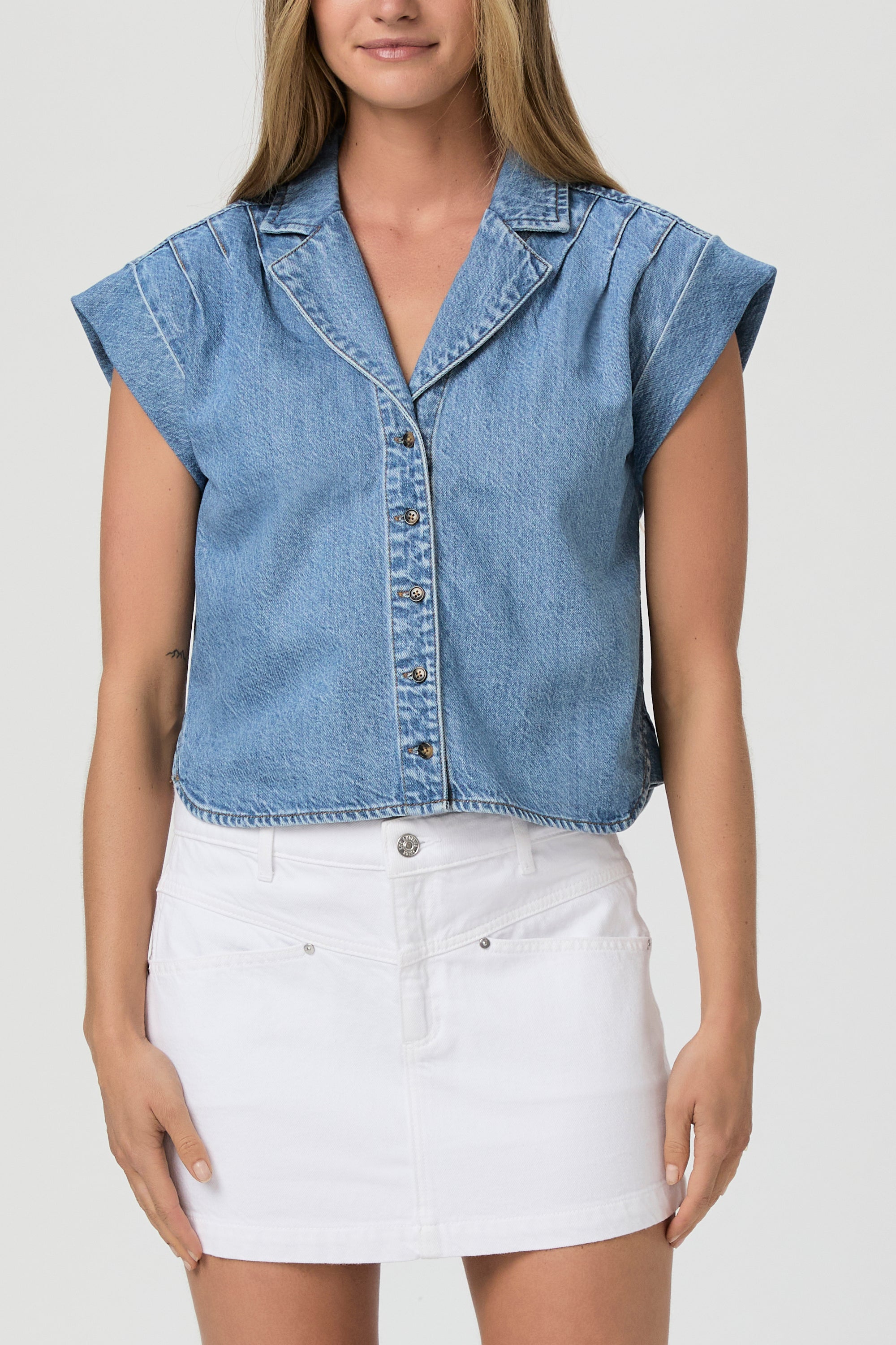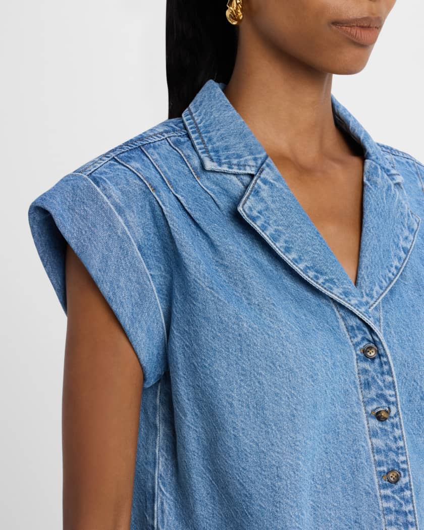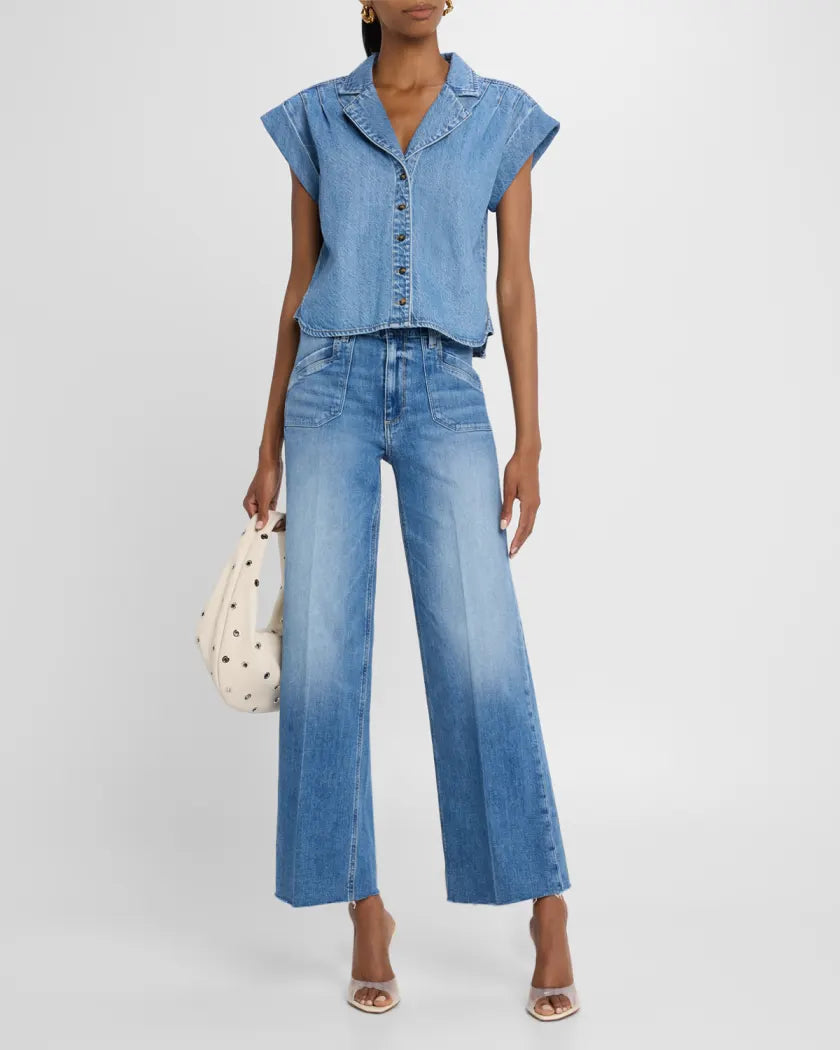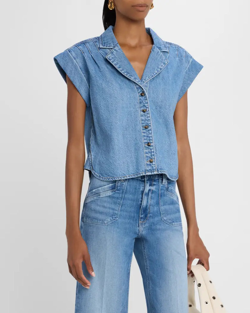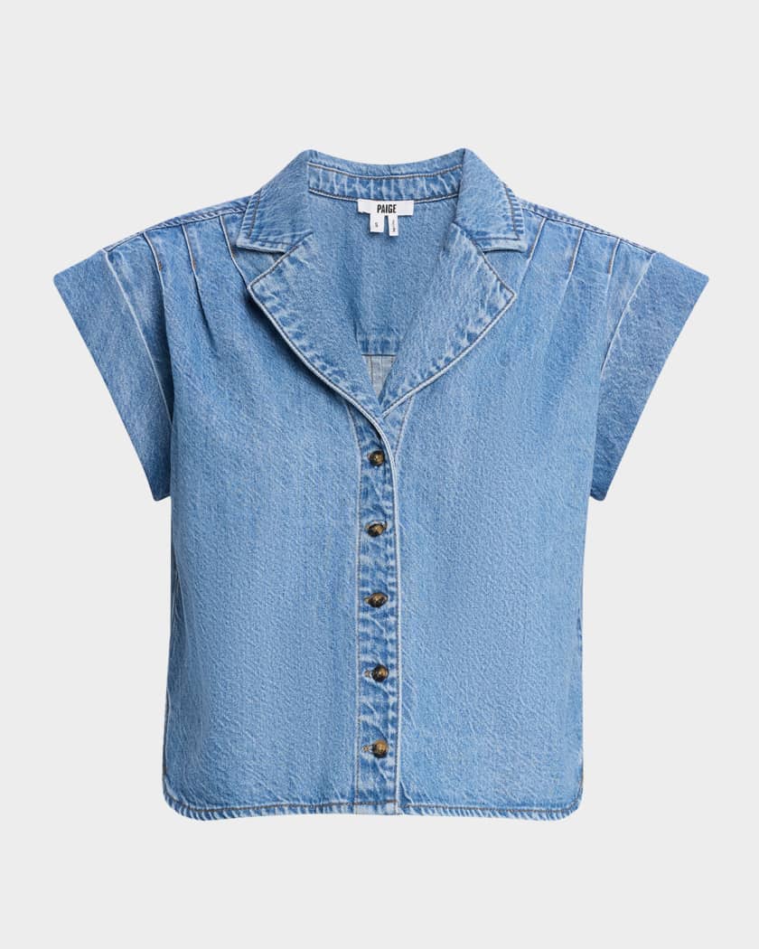 • PAIGE "Hadley" lightweight denim shirt with shoulder pleats
