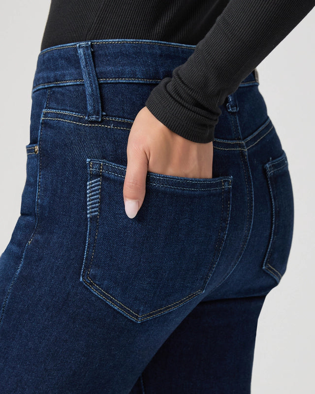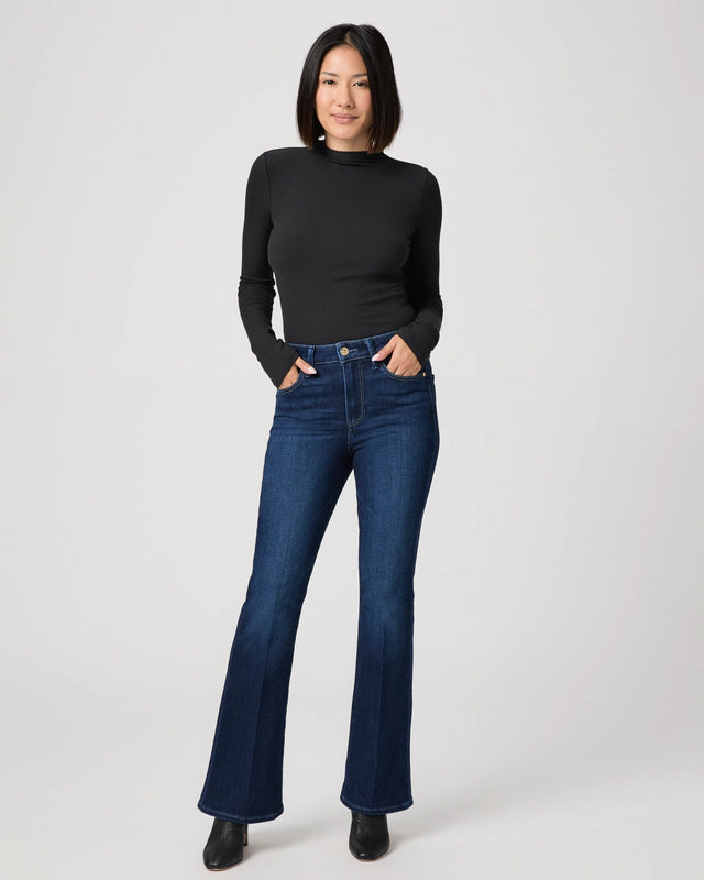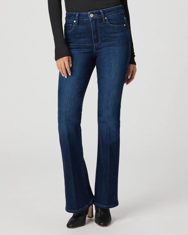 The High Rise Laurel Canyon is a vintage PAIGE style that has made a big comeback. Cut from TRANSCEND VINTAGE denim in a rich dark wash with a 30" inseam, this bootcut silhouette combines the signature comfort of Transcend with rich denim character for a lived-in look.