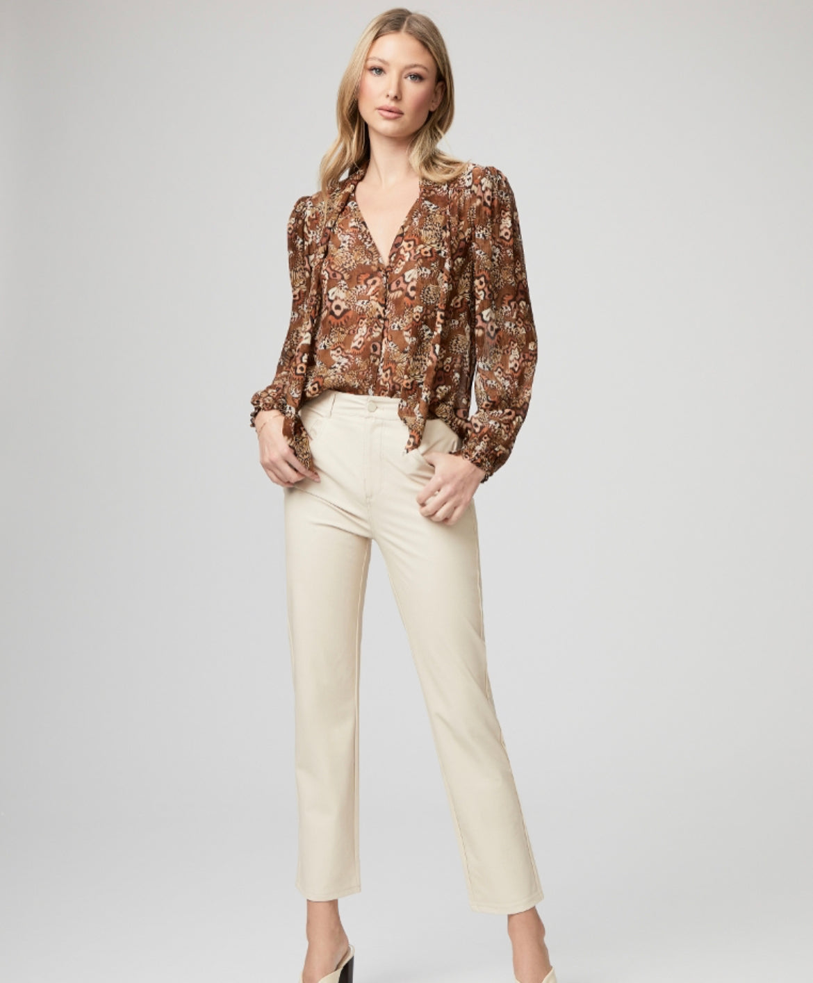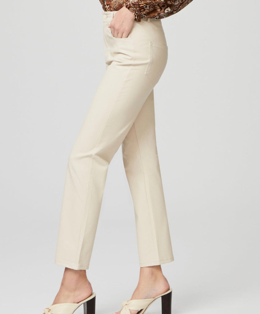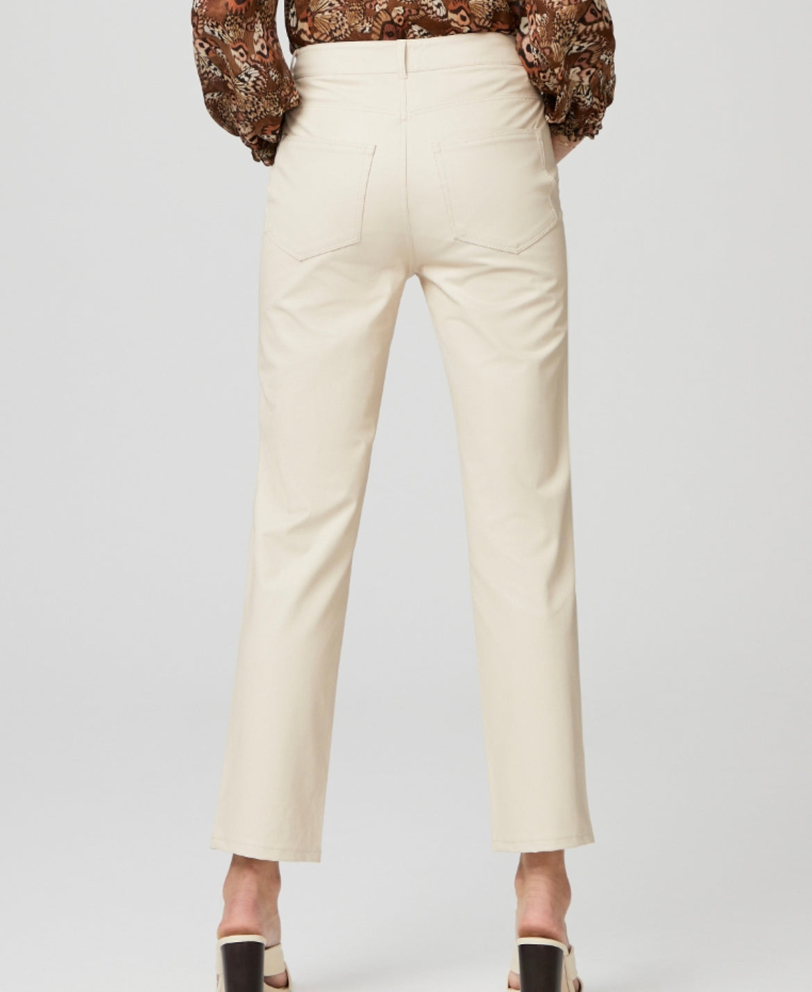This modern straight leg creates a long, lean silhouette with an ultra high rise and a slightly longer 29” inseam that sets it apart from our other straight fits. Crafted in our heavy stretch vegan leather in a gorgeous ecru hue, this style is incredibly comfortable and has the luxe look and feel of real leather.
