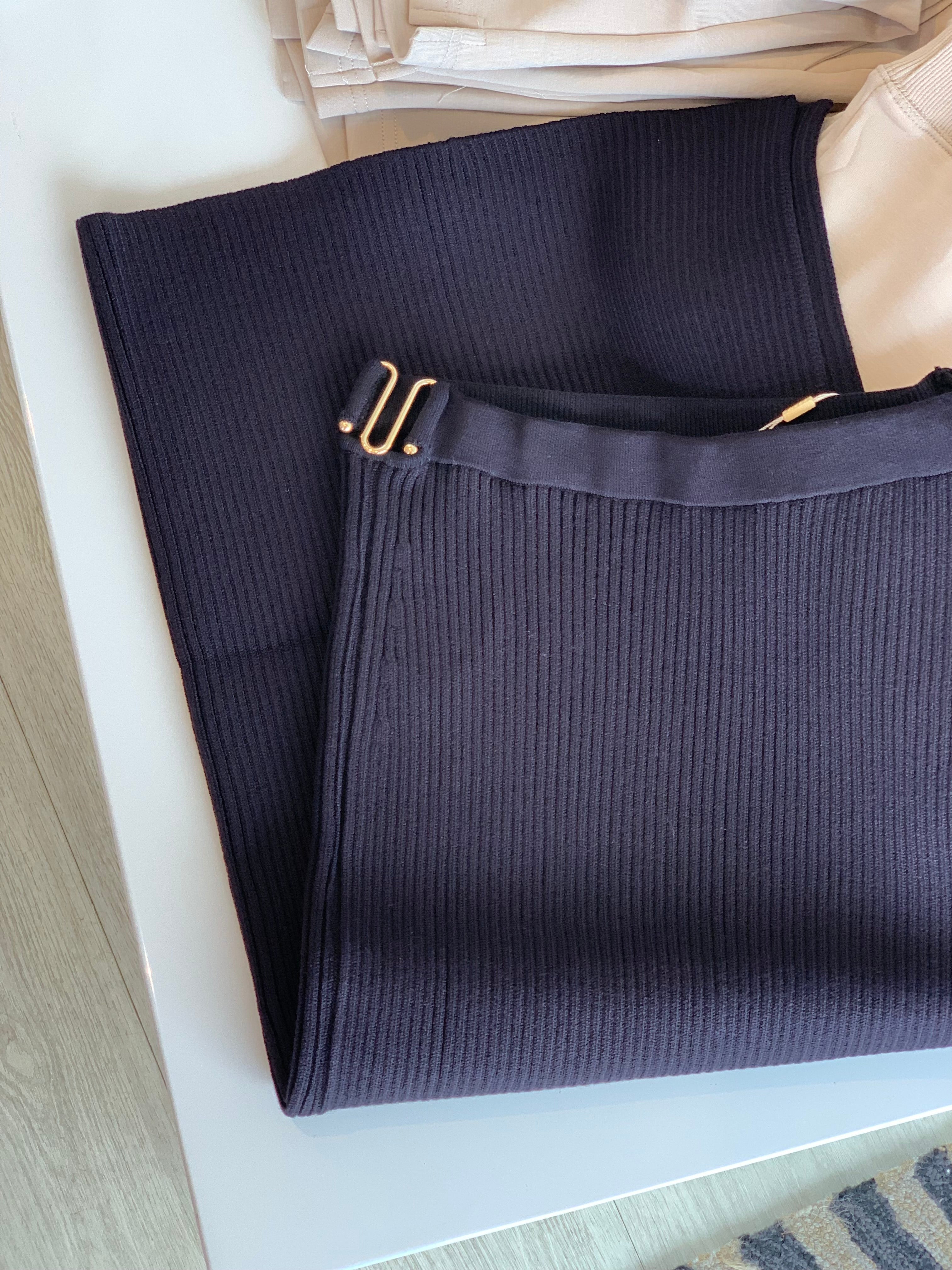 Creating a beautiful silhouette is notable with elegant knitwear and the Alana Skirt is designed with superior craftsmanship. She is figure flattering and comfortable. Pair her with the Brenda Tank for a monochromatic sleek and sexy style. Gold hardware accents. Pull on style.