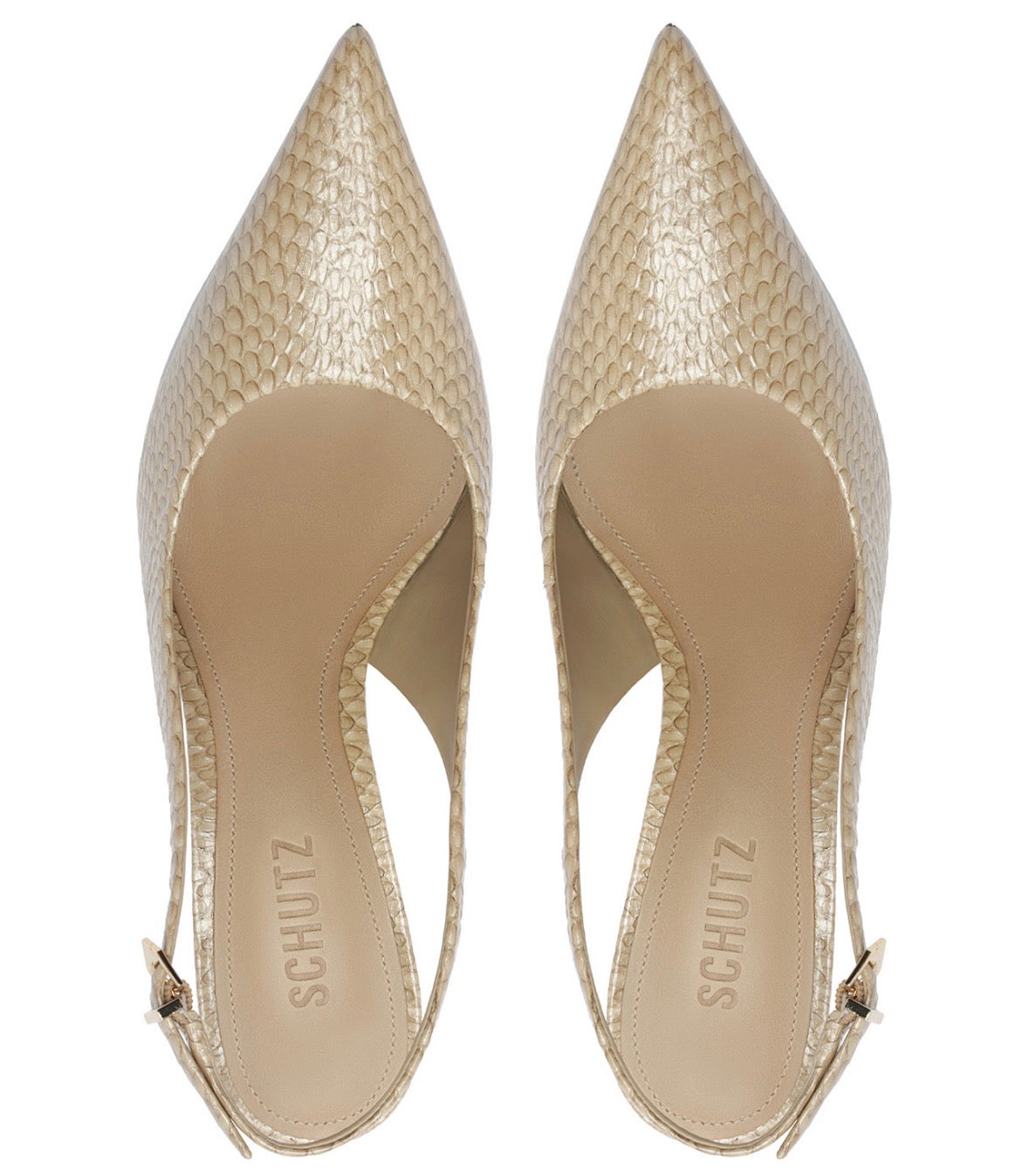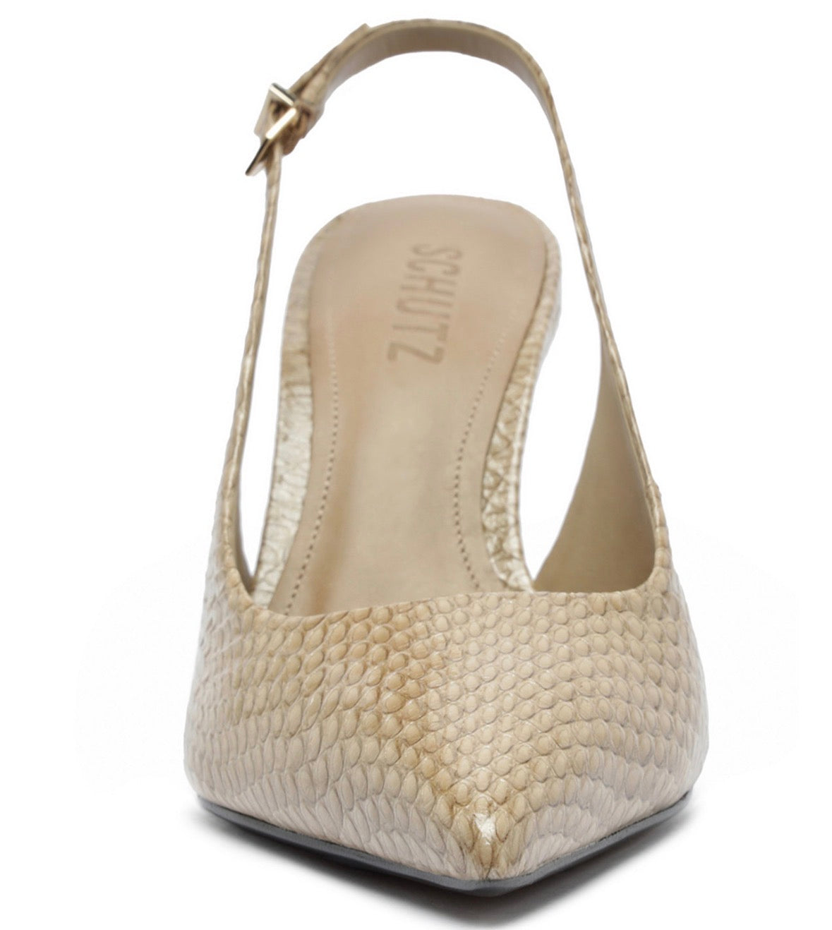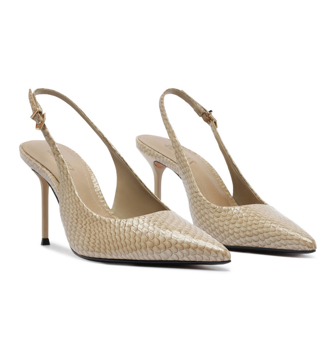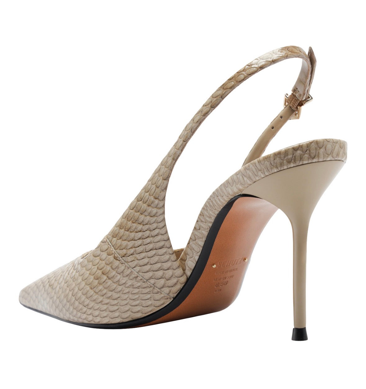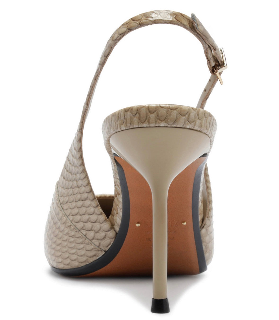 Let your heels do the talking. The Paola pump is a fierce standout, designed in a bold black snakeskin leather with a sharp pointed toe and slim slingback strap. A stiletto heel adds height with attitude, while the bold pattern brings out your wild side. It's sculpted, sleek, and made to pop—whether you're dressing up denim or taking over the night.
