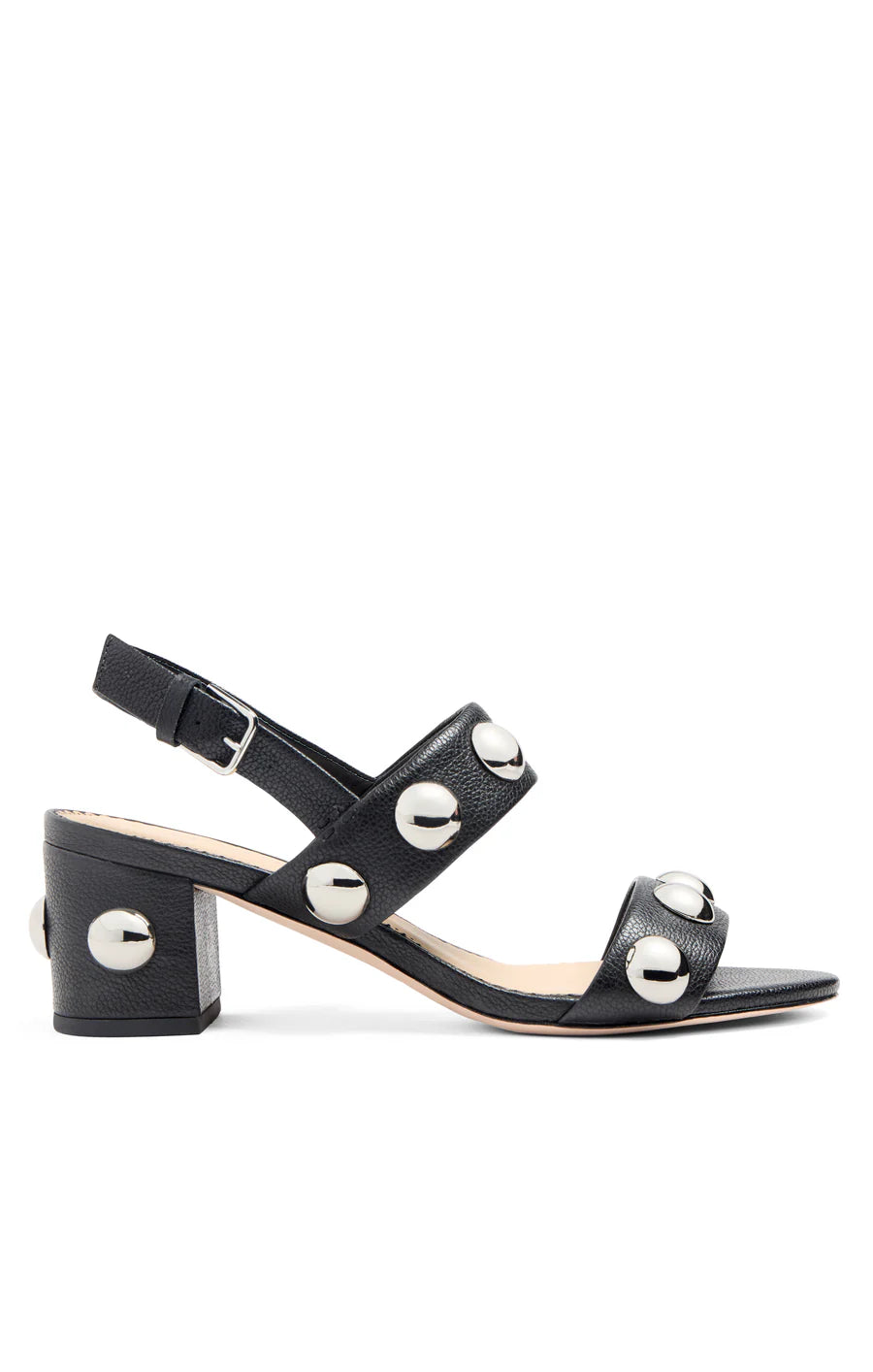 Experience modern elegance with the Gemma Studded Block Heel Sandal. Adorned with round studs and a 5.5cm block heel, this sandal offers a stylish balance of comfort and support, ensuring you step out with confidence all day long.