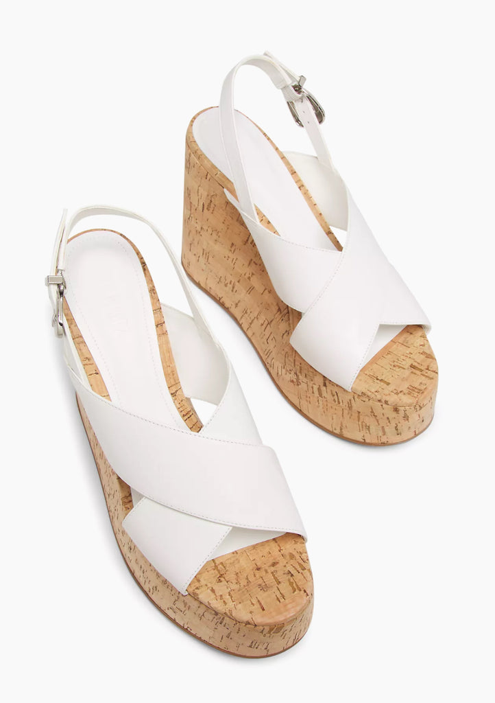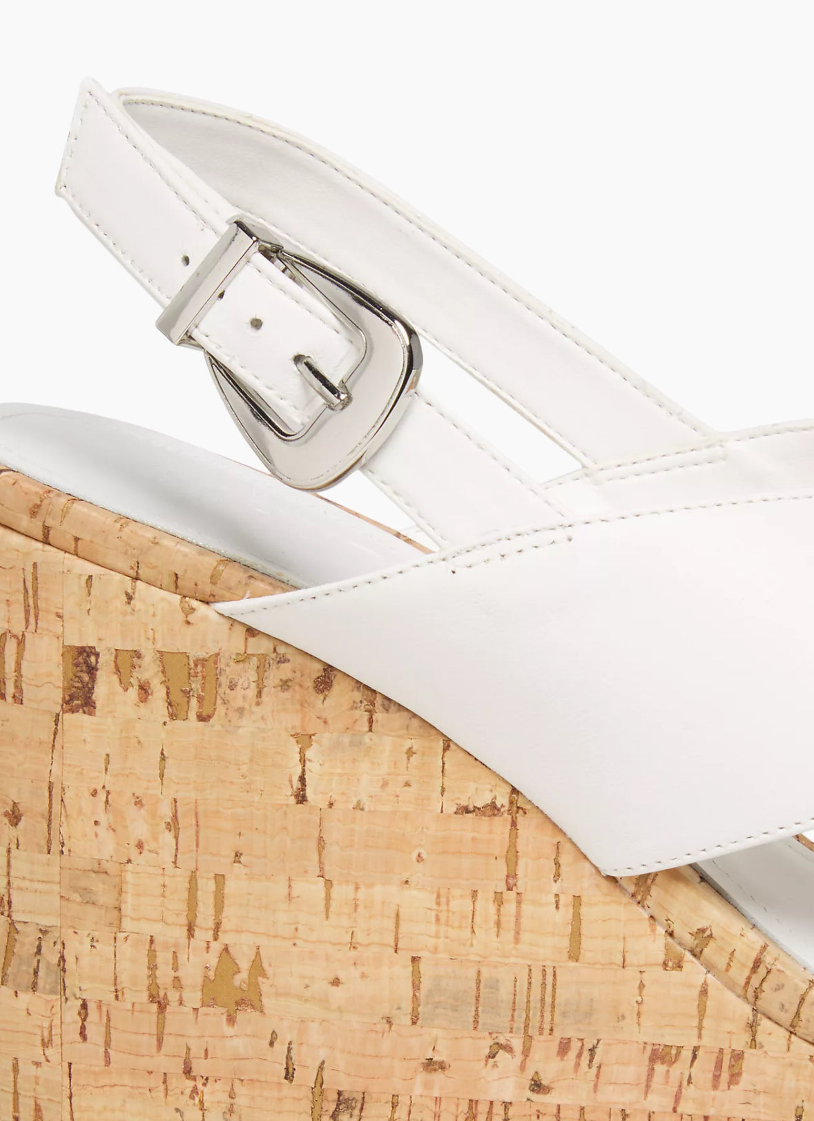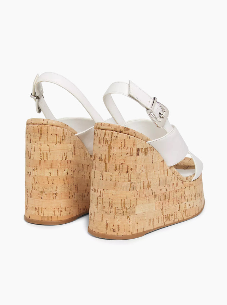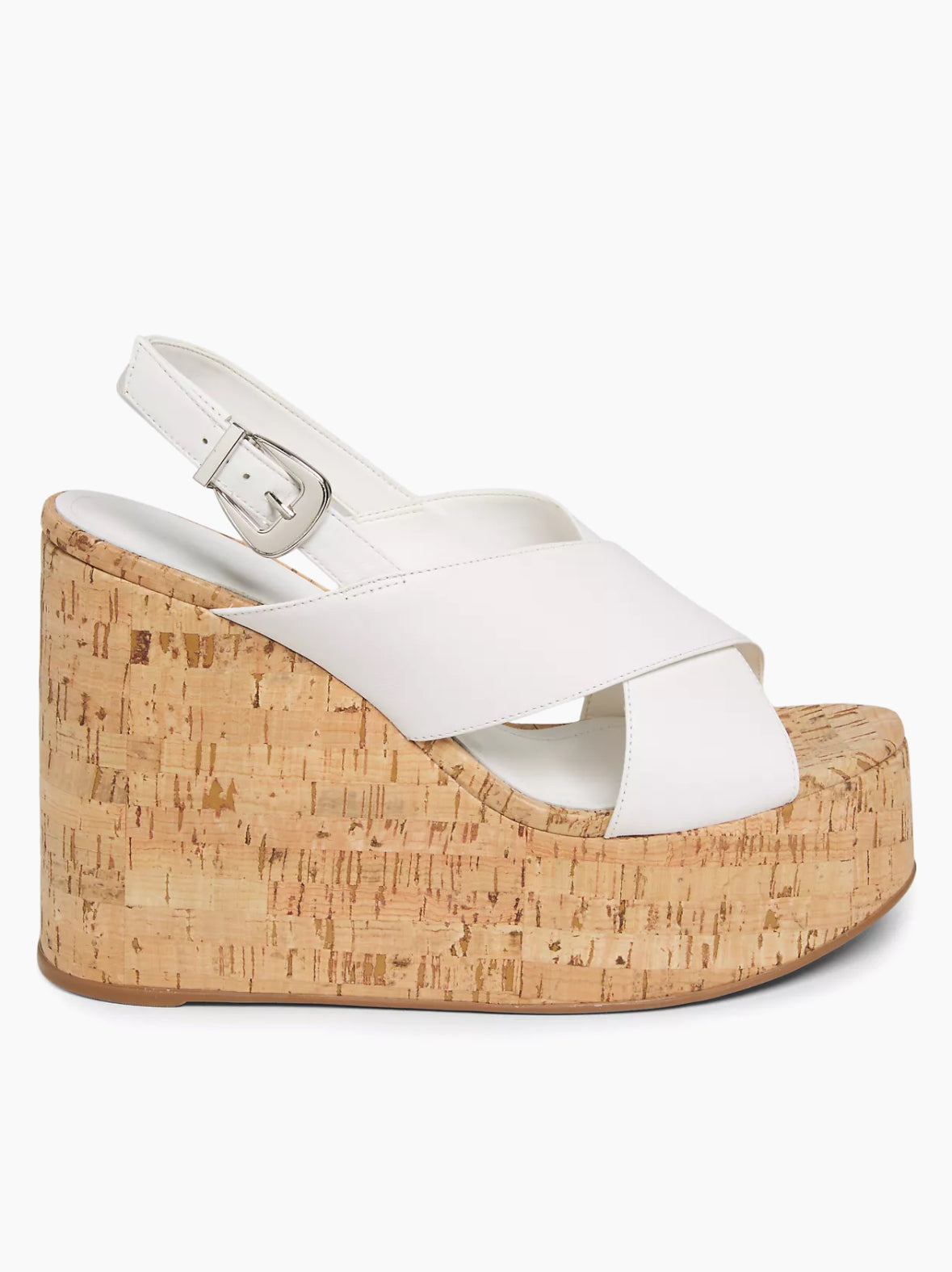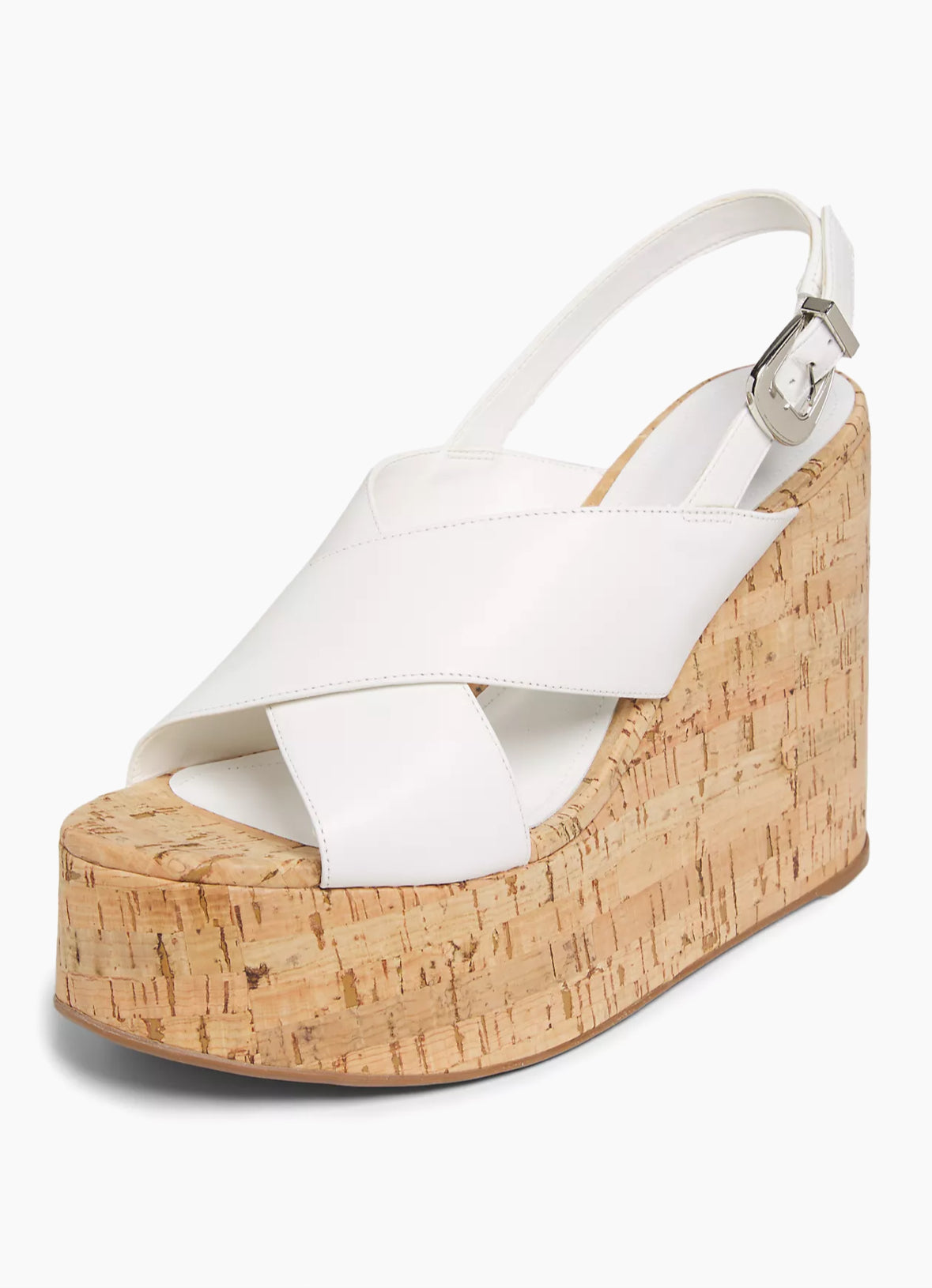 From the Jennifer Collection. These Schutz sandals are crafted of leather and designed with a cork wedge heel.