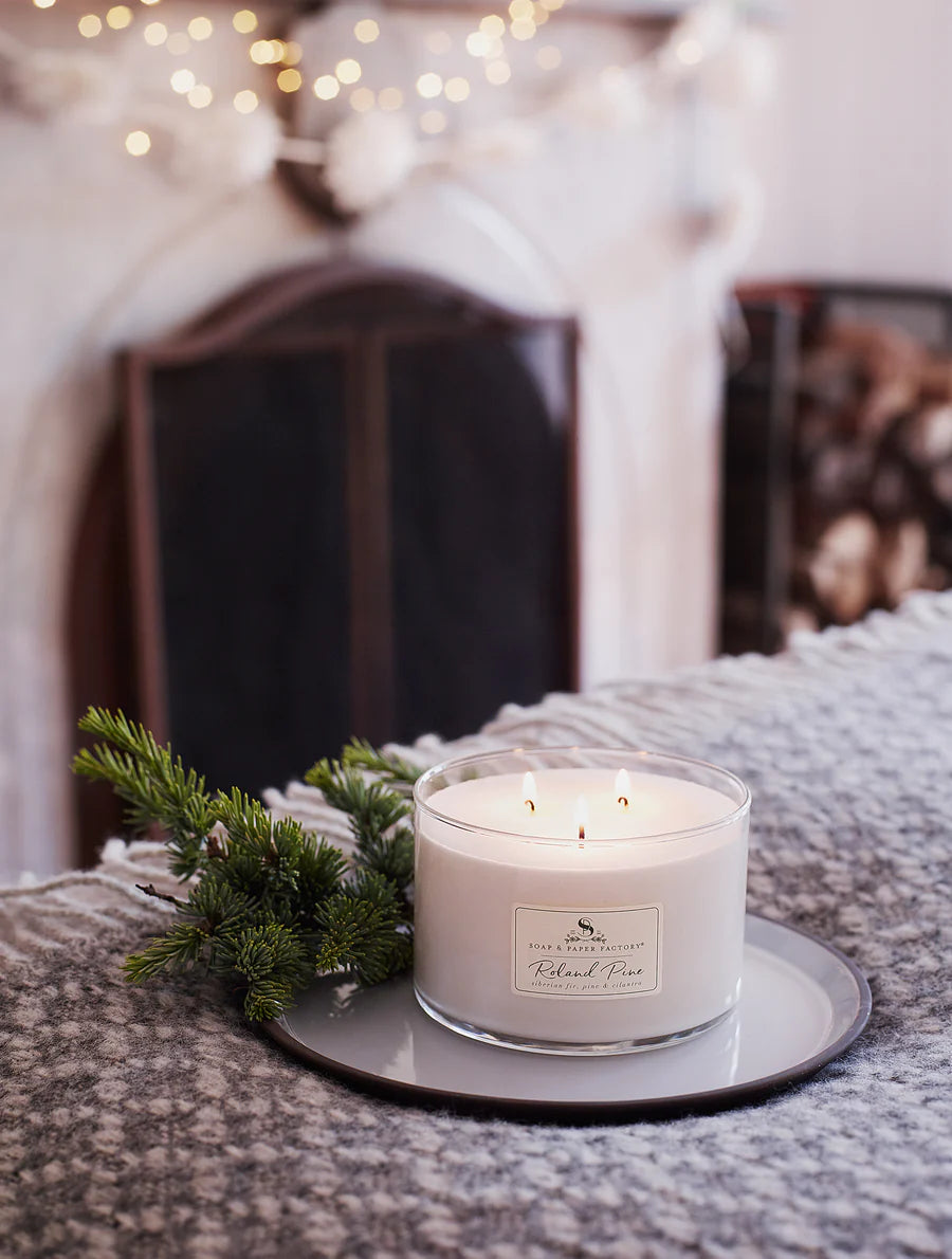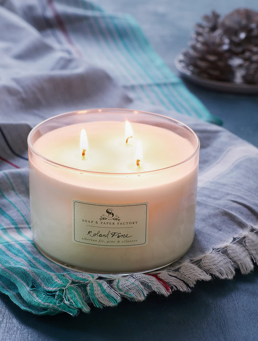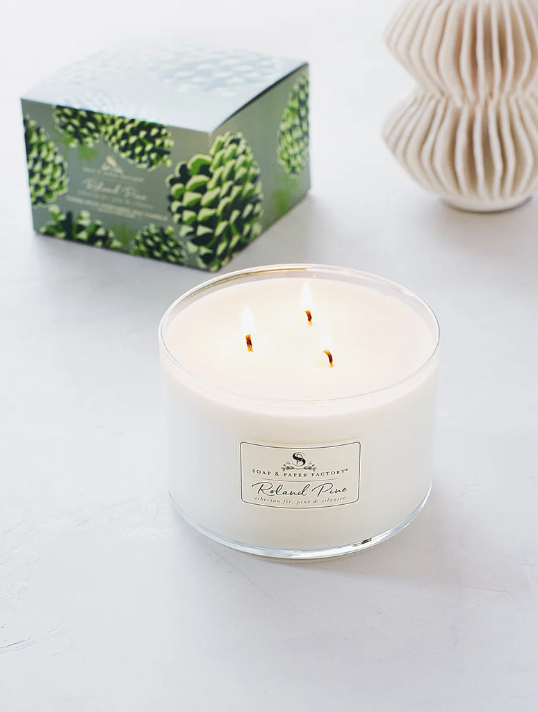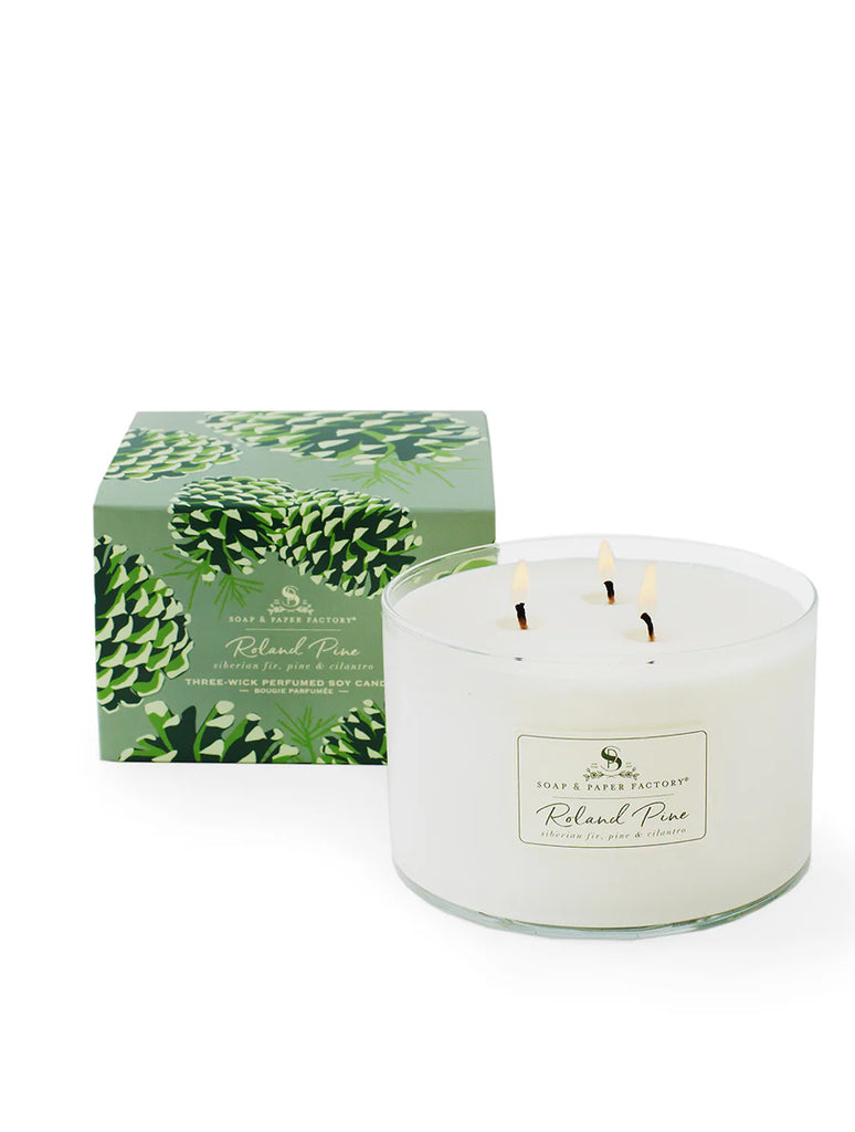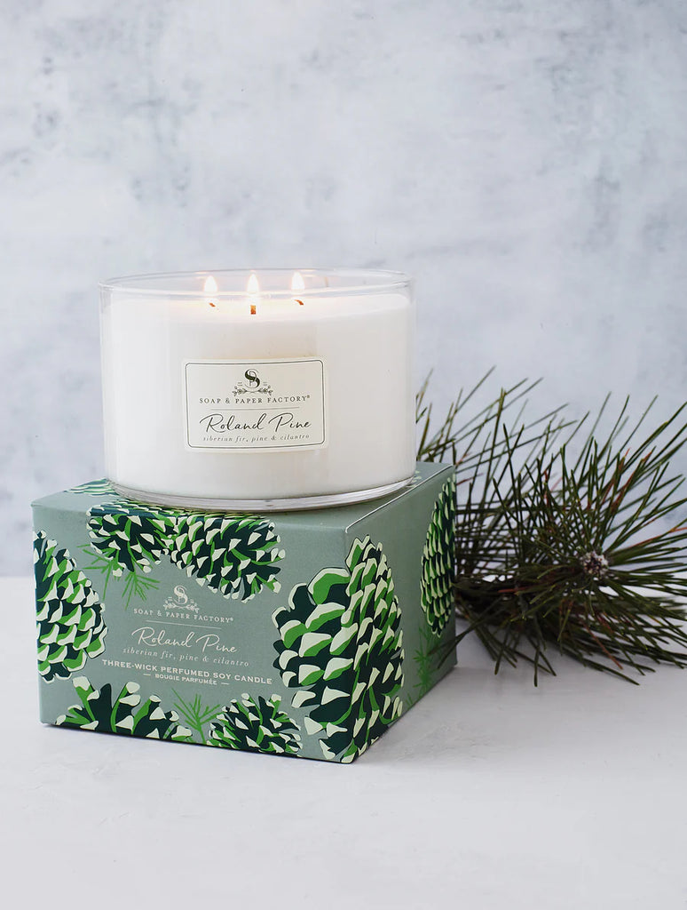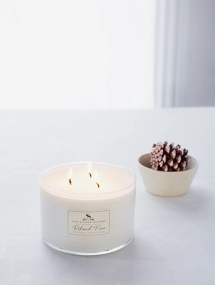 Roland Pine 18 oz Three-Wick Glass Soy Candle
