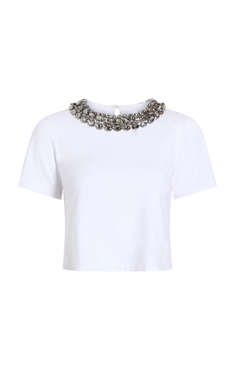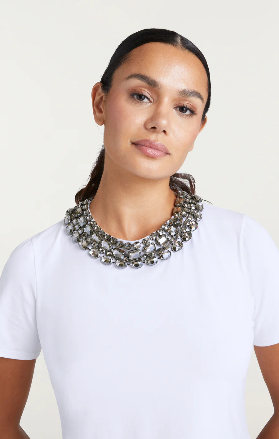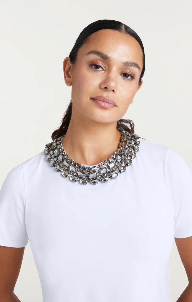 Elevate your tee game with our Chunky Necklace Shrunken Tee. This trendy top features a chunky necklace detail and short sleeves for a stylish touch. Made with soft and breathable cotton, it's perfect for everyday wear. Available in classic white for a versatile addition to your wardrobe.
