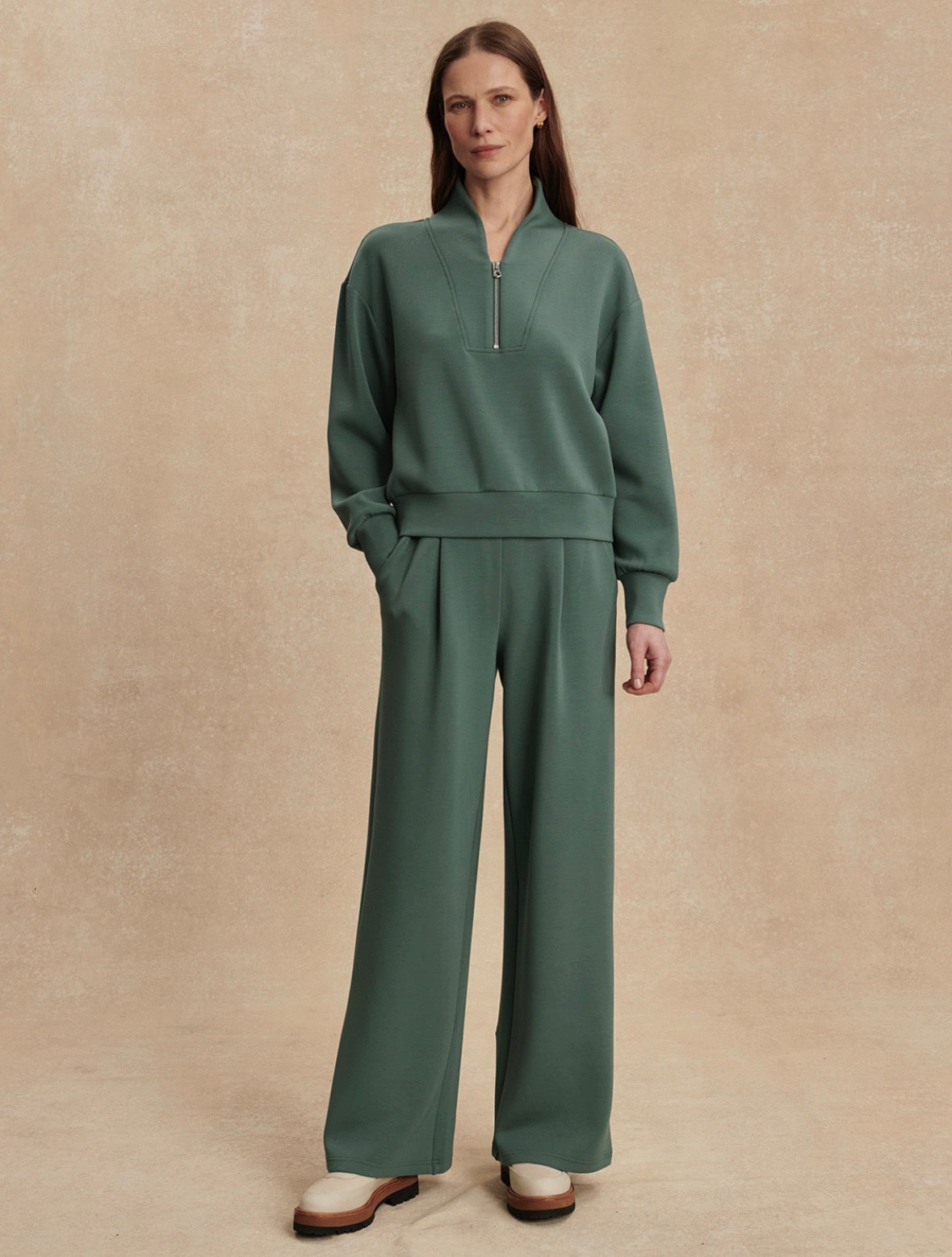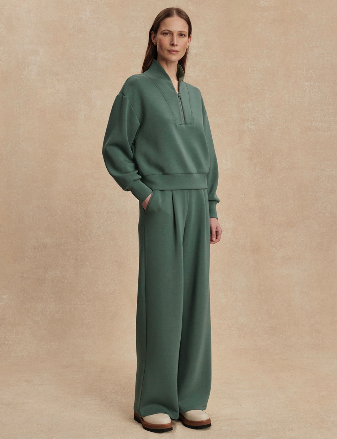 Subtly cropped for versatile styling, the Davidson sweat is an essential layering piece. Made in our lightweight DoubleSoft® fabric, this cropped style is complete with dropped shoulders and deep cuffs. The epitome of laid-back luxury, pair this contemporary top layer with coordinating sweatpants.