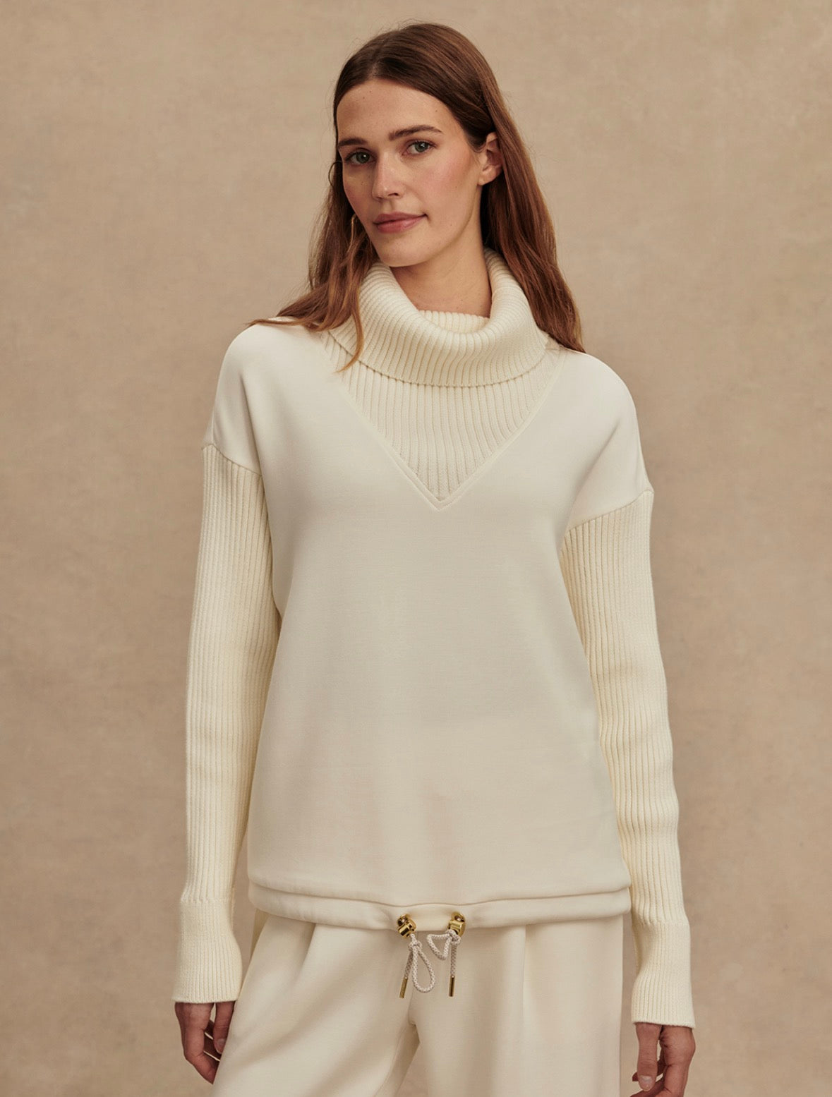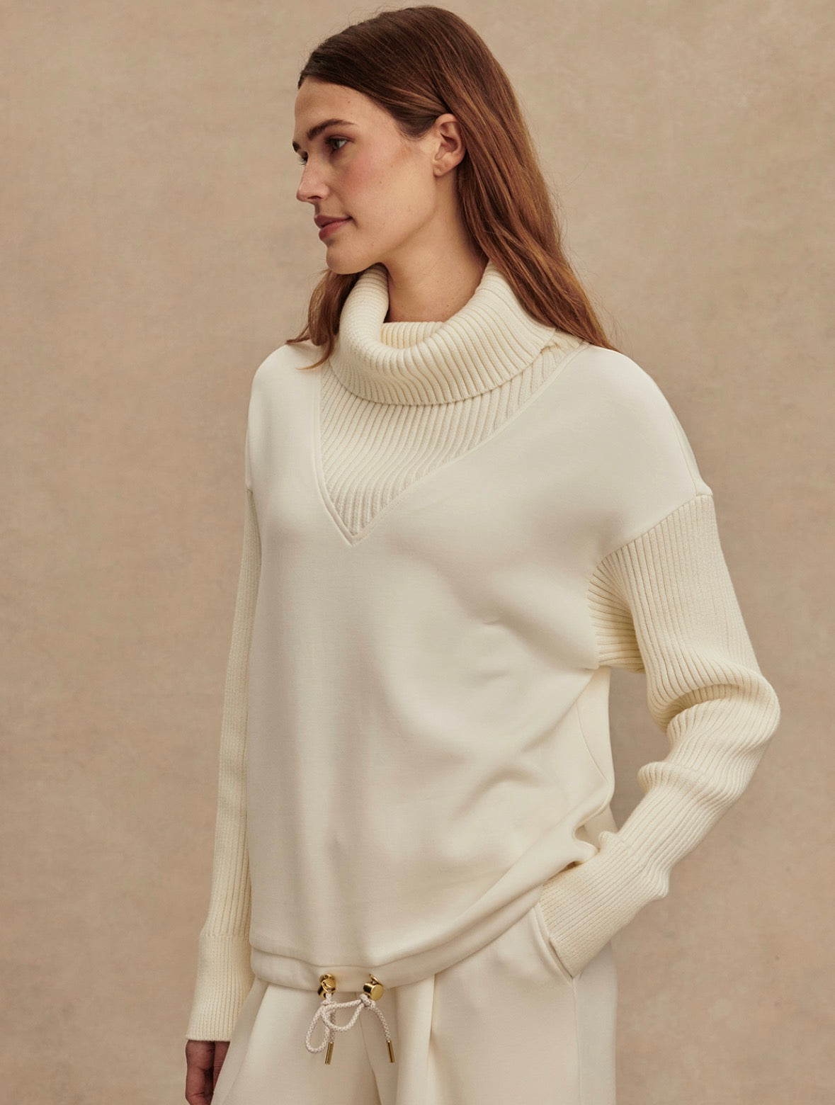 Made with a DoubleSoft® body and a knitted cowl neck and sleeves, the Hannah features dropped shoulders for a relaxed, oversized fit and a drawcord at the hem for customizable styling. Elegant and contemporary, it’s a go-to wardrobe staple.