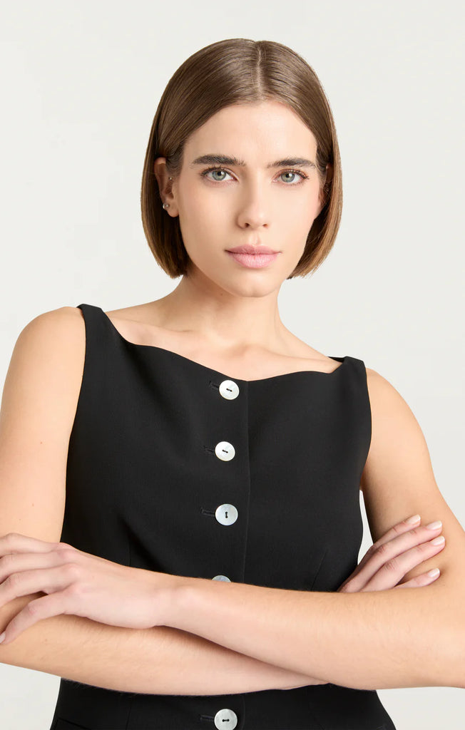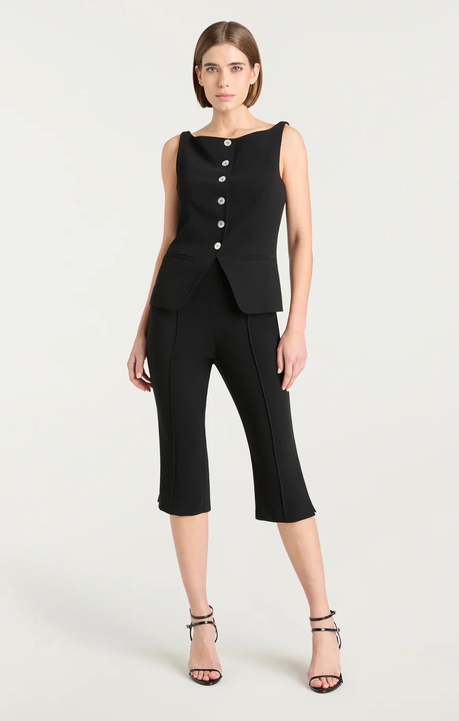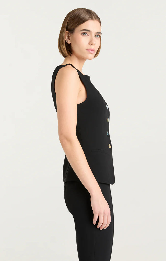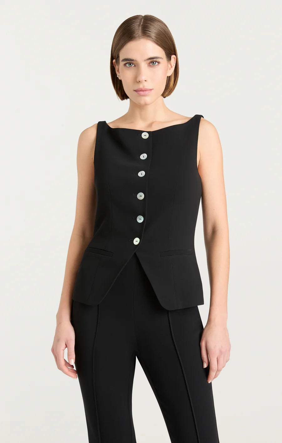 Indulge in luxury with the Lemonis Vest. This full-length top features a sophisticated cowl neckline and a button-up design, perfect for creating a complete and elegant look. Complete the ensemble with the matching Lemonis Pant. Elevate your style with the Lemonis Vest.