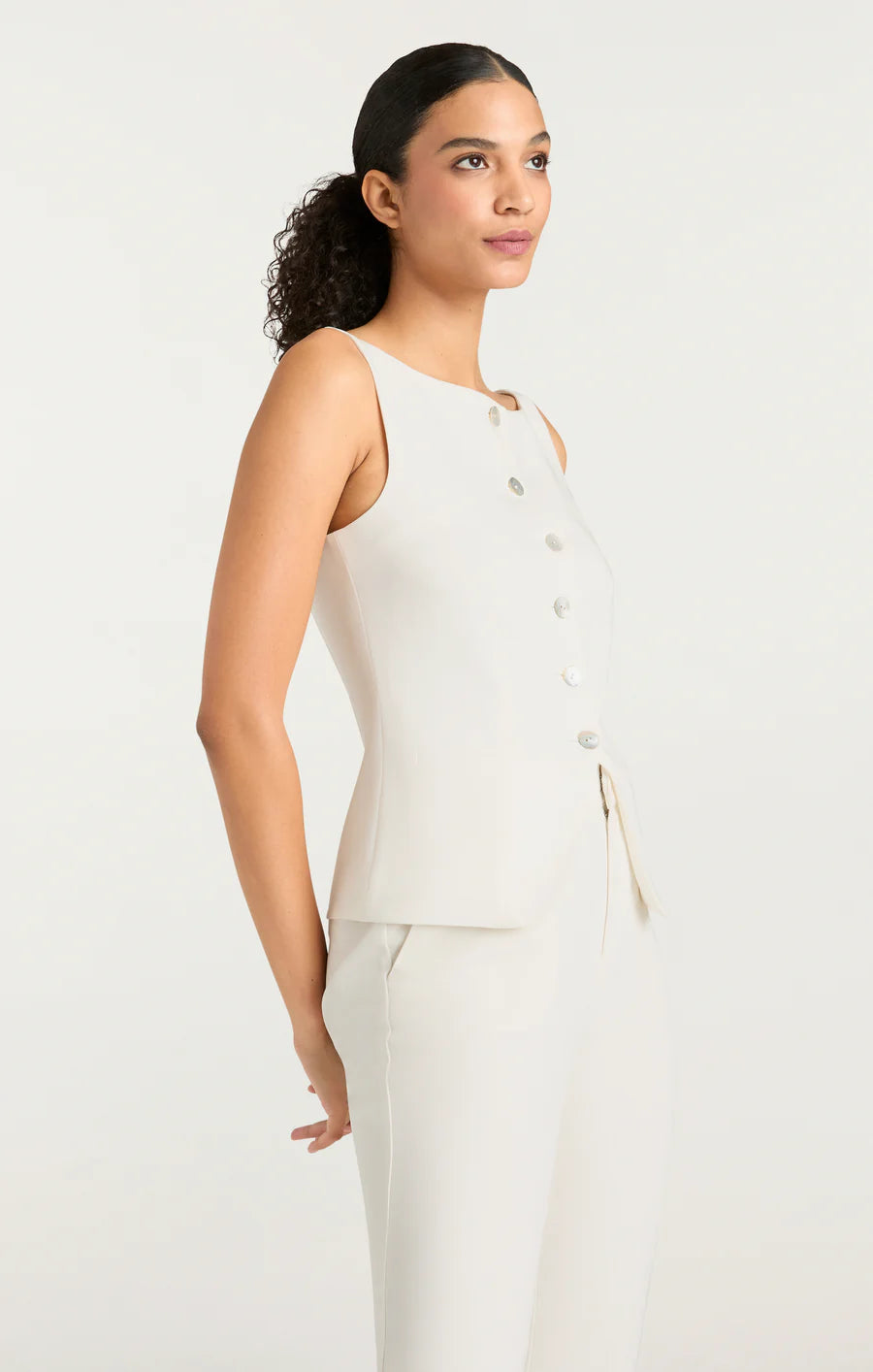 Indulge in luxury with the Lemonis Vest. This full-length top features a sophisticated cowl neckline and a button-up design, perfect for creating a complete and elegant look. Complete the ensemble with the matching Lemonis Pant. Elevate your style with the Lemonis Vest.