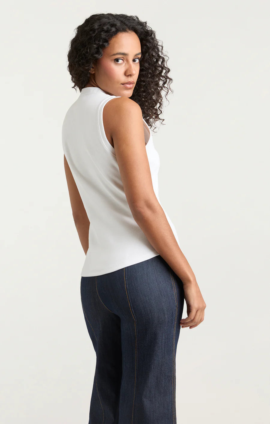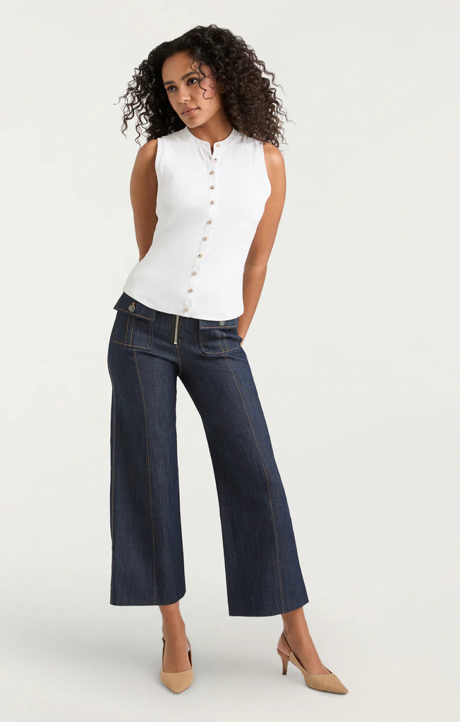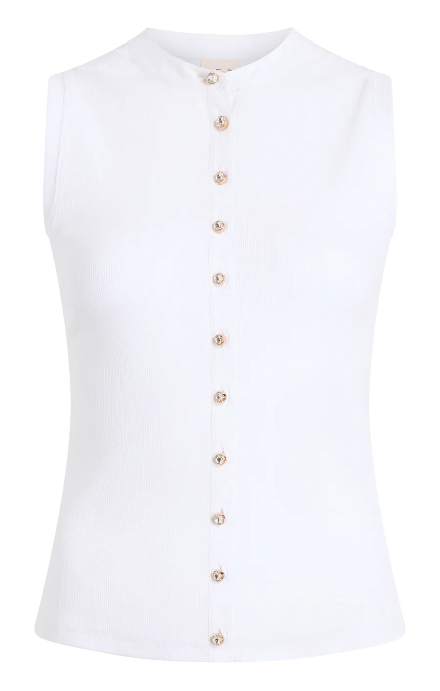 Experience sophistication and elegance with our Sleeveless Beverly Top. Crafted from luxurious materials, this white blouse boasts diamond buttons for a touch of glamour. Its sleeveless design and full length create a timeless and effortless look. .