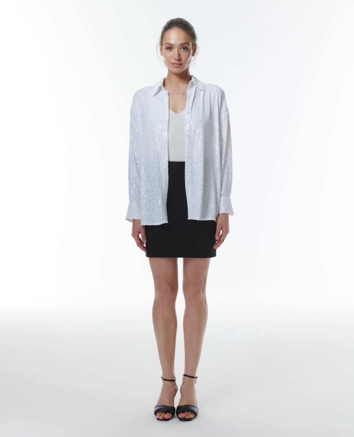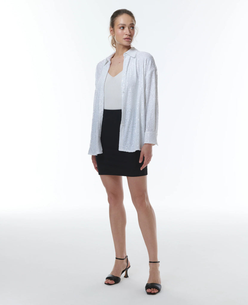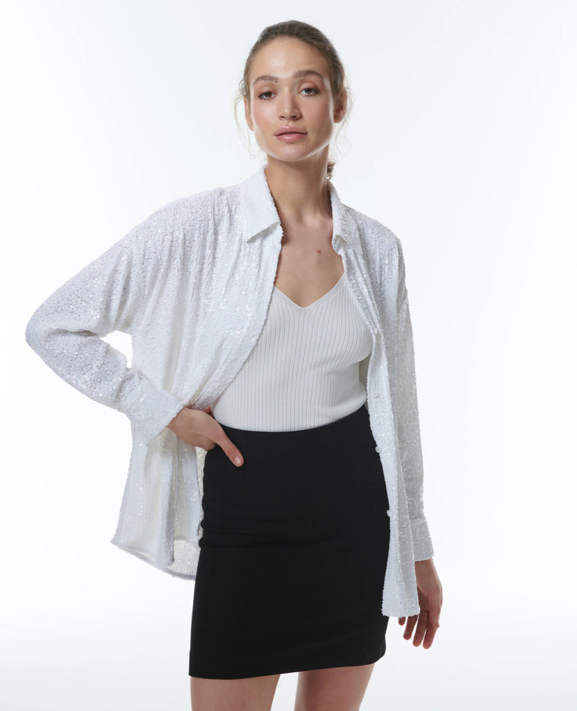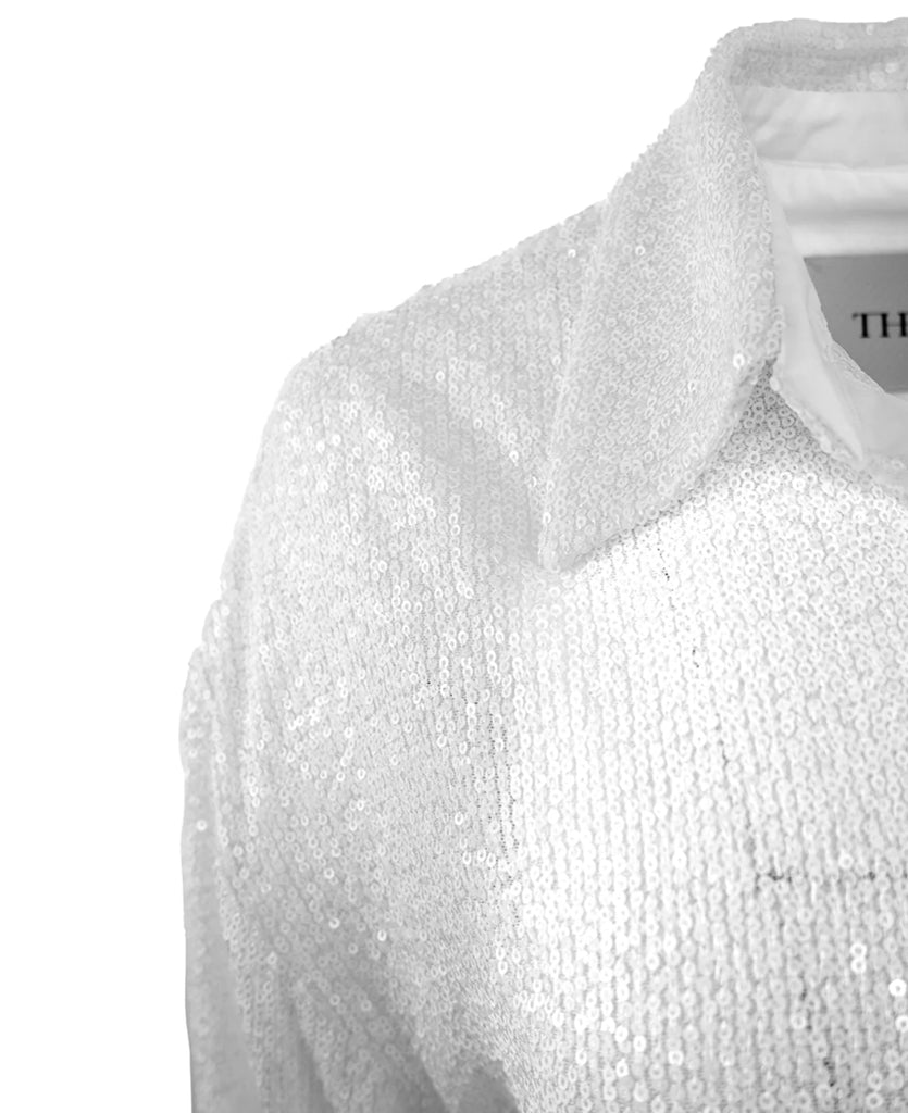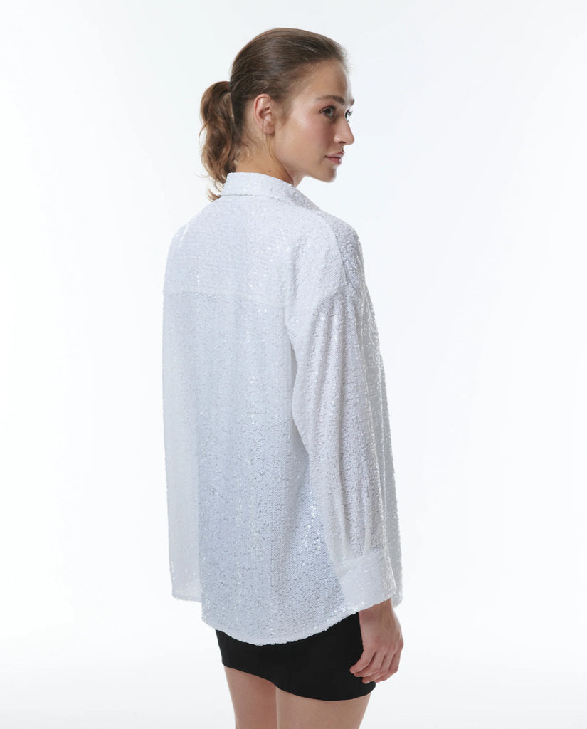 Get ready to dazzle in our Styx Sequin Boyshirt! This oversized shirt made from shimmering white sequins will make you stand out in any crowd. Perfect for a night out or adding sparkle to your everyday look.