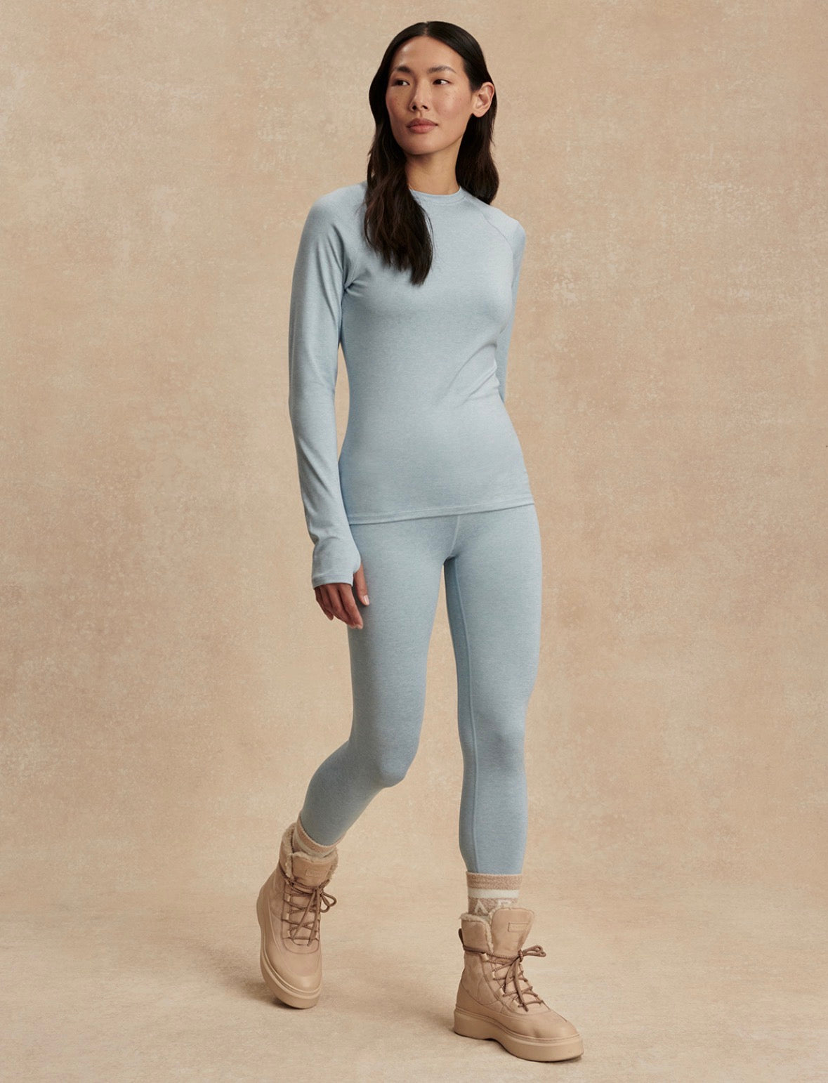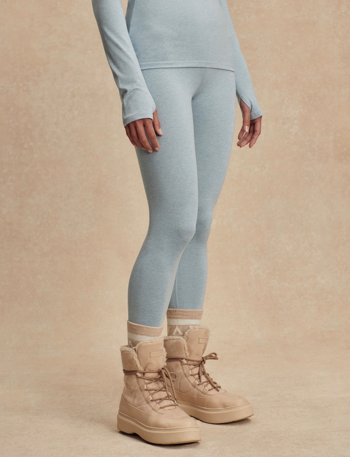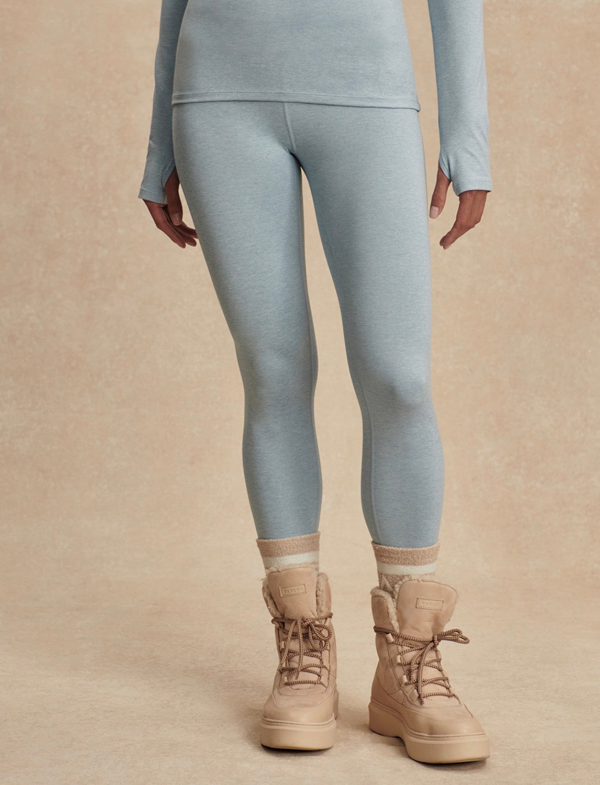 Made in super soft marled jersey with four-way stretch, these insulating leggings provide warmth and flexibility. With a high, rolled waistband for a smoothing effect, they are the perfect choice for any lifestyle.